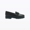 Mocassin en cuir de veau vernis italien hydrofuge. Doublure cuir, semelle en gomme anti-glisse et isolante. Talon de 3 cm. Convient à toutes les morphologies. Souplesse et résistance aux intempéries.