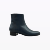 Bottines noires en cuir italien. Talon de 3 cm, doublure cuir et zip interne. Semelle en cuir et gomme naturelle anti-glisse et isolante. Résiste à la pluie.