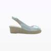 Wedge espadrilles in the form of suede cross-over sandals with adjustable back strap. Leather lining, heel 5 cm with 2 cm front platform. Lightweight, these espadrilles are ideal for sensitive feet. Suitable for all body types.