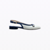 Ballerine slingback à bout pointu en cuir de veau italien. Talon de 2,5 cm. Doublure en cuir. Semelle en cuir. Bride arrière réglable.