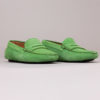 Moccasin carshoes with rubber sole and inner heel for a camber of 2 cm. Ideal for preventing back pain from shoes that are too flat. Rain resistant Italian grained calfskin, leather lining. Suitable for all body types and sensitive feet.