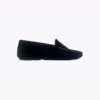 Moccasin carshoes with rubber sole and inner heel for a camber of 2 cm. Ideal for preventing back pain from shoes that are too flat. Italian rain-resistant suede calfskin, leather lining. Suitable for all body types and sensitive feet.
