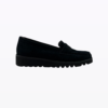 Mocassin carshoes à semelle gomme et talonnette intérieure pour une cambrure de 2 cm. Idéal pour prévenir le mal de dos dû à des chaussures trop plates. Veau velour italien résistant à la pluie, doublure cuir. Convient à toutes les morphologies et aux pieds sensibles.