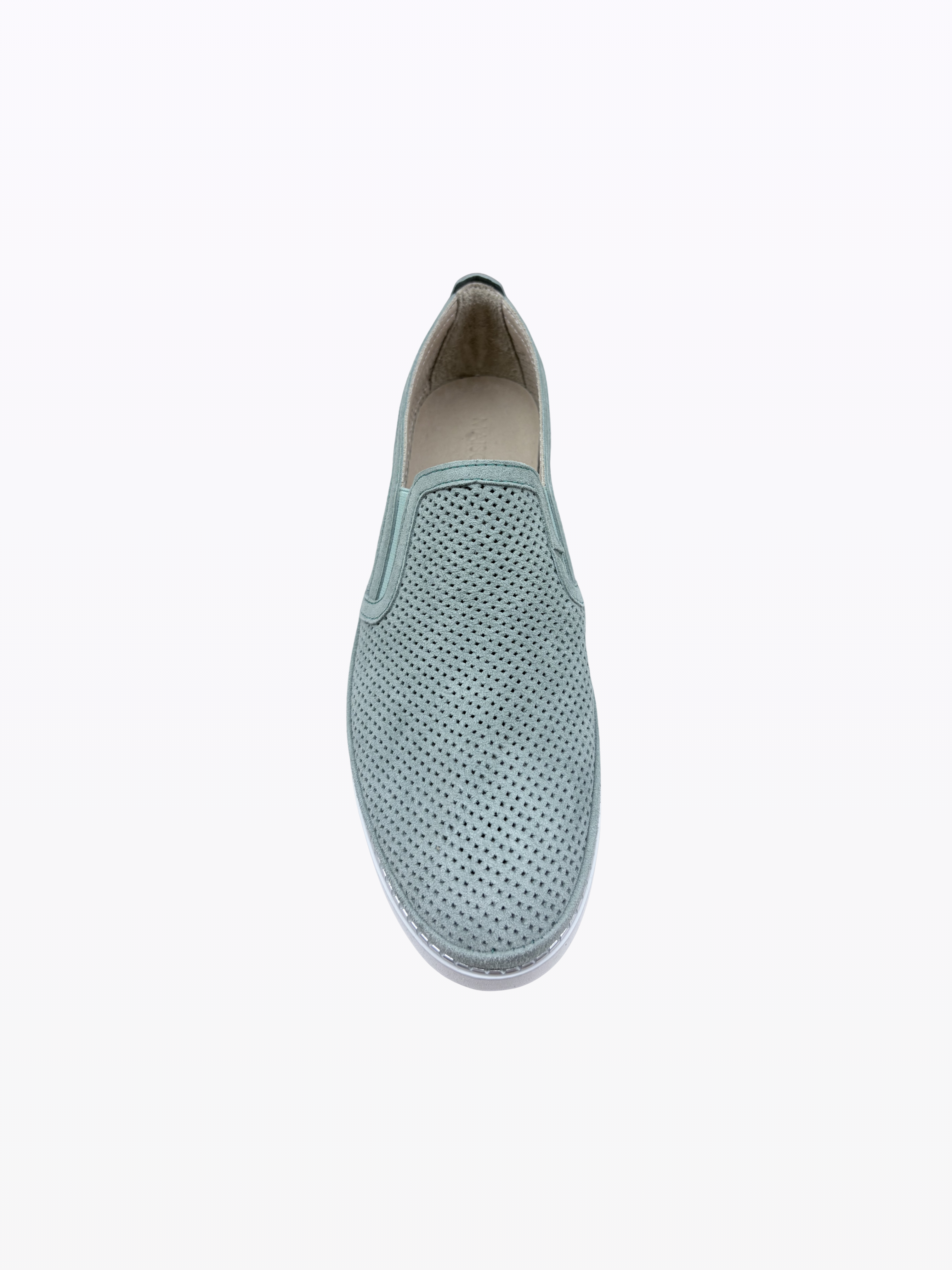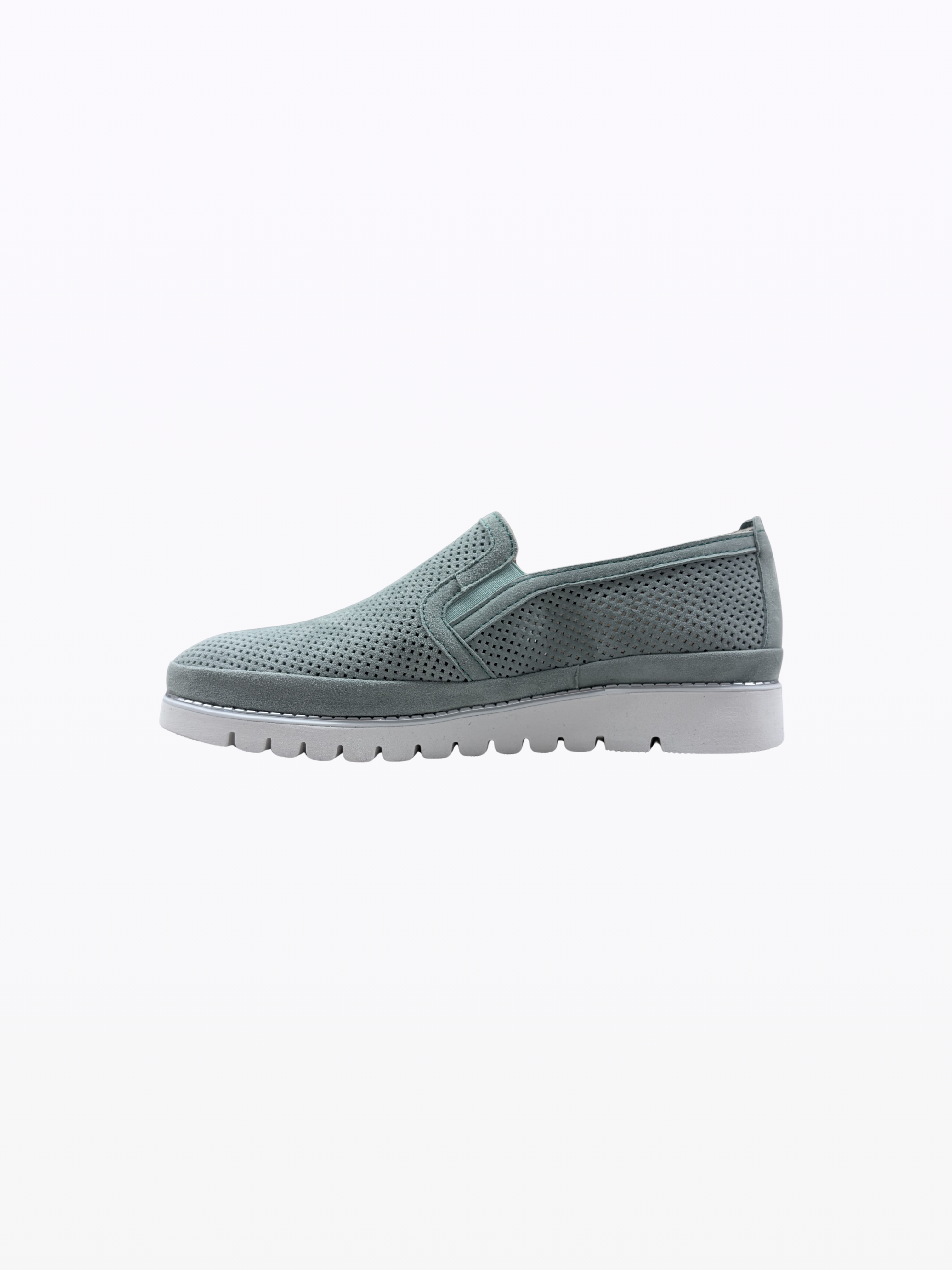 Moccasin in perforated, soft Italian suede with elastic. Leather lining, removable insole. 2.5 cm heel. Non-slip, insulating rubber outsole. Ultra-comfortable and ideal for sensitive feet.