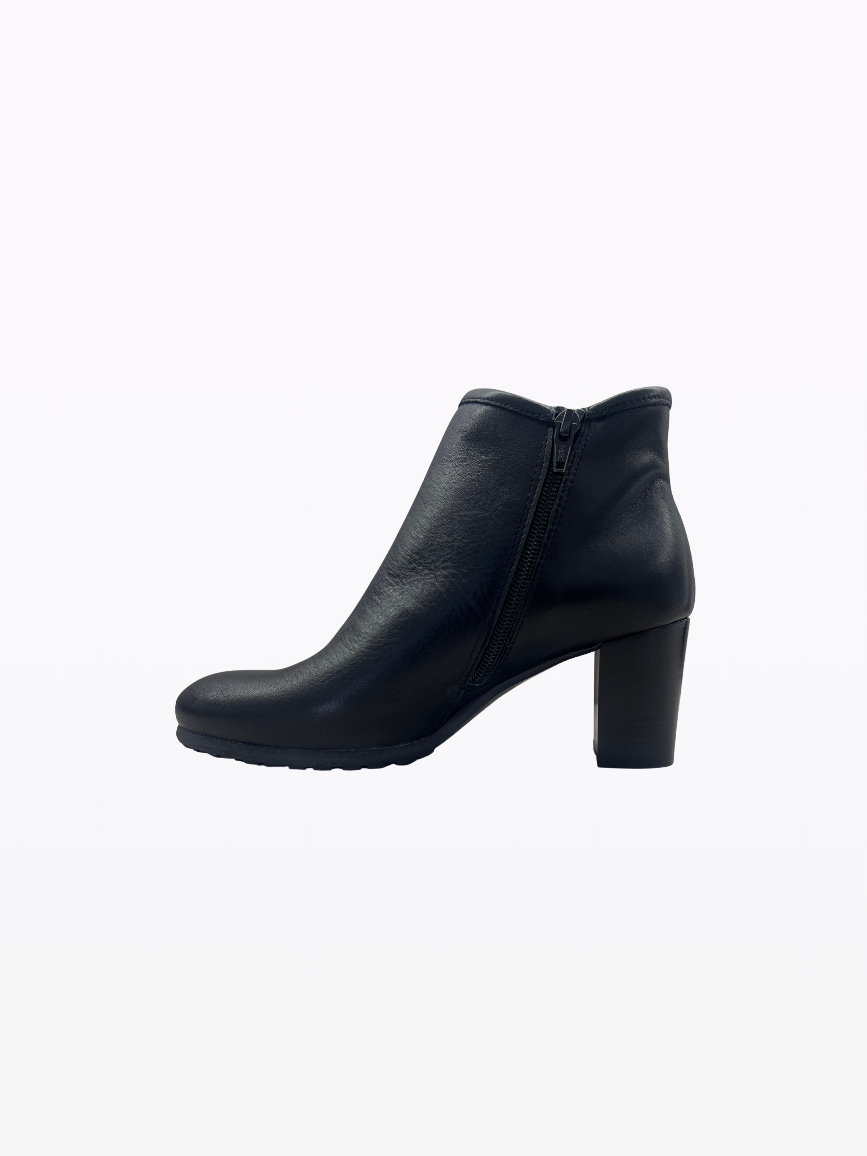 Italian leather ankle boots. Warm and soft sheepskin lining. 6.5 cm heel. Double zipper and removable inner sole. Non-slip and insulated rubber outer sole. Weather resistant.