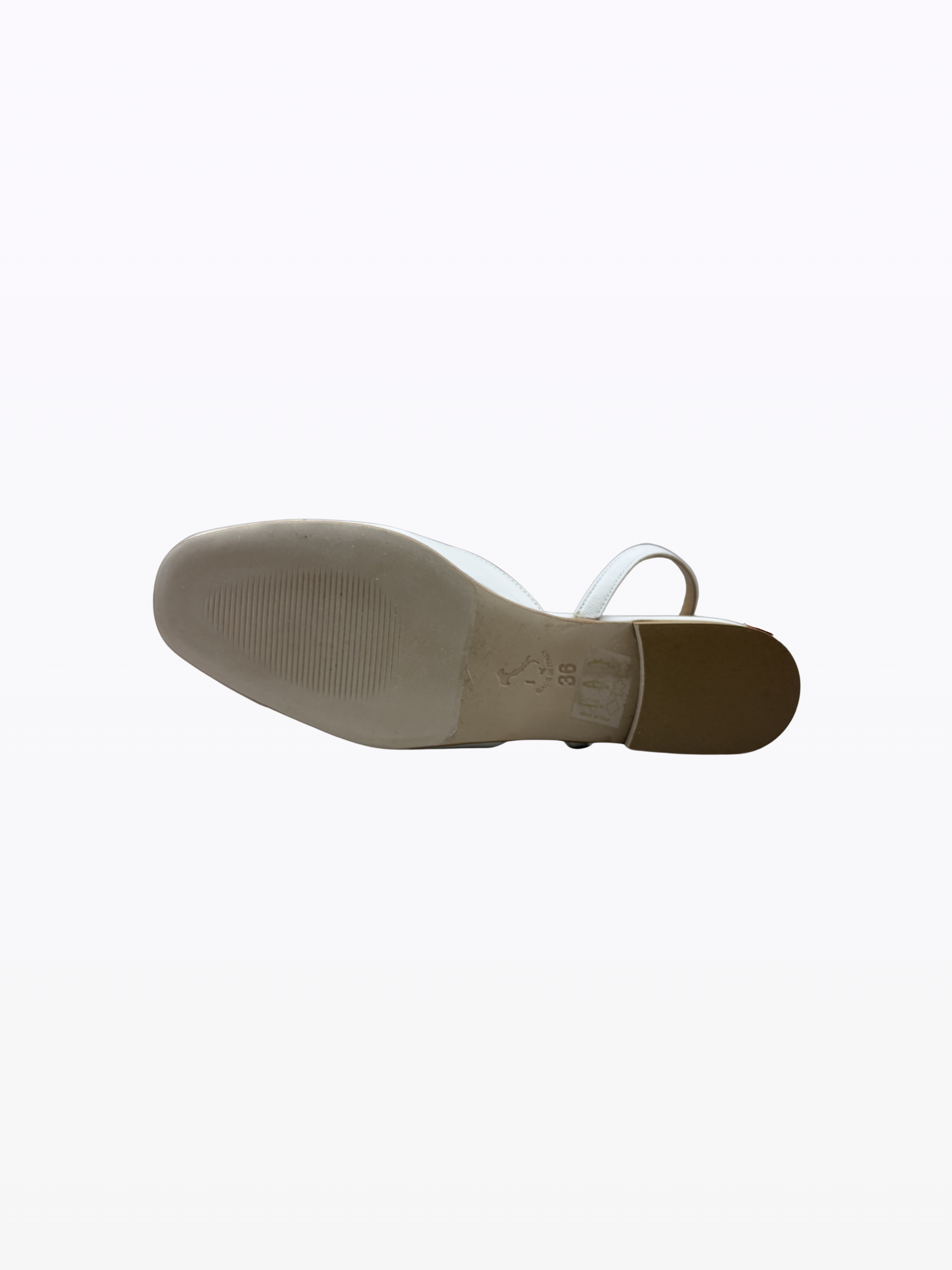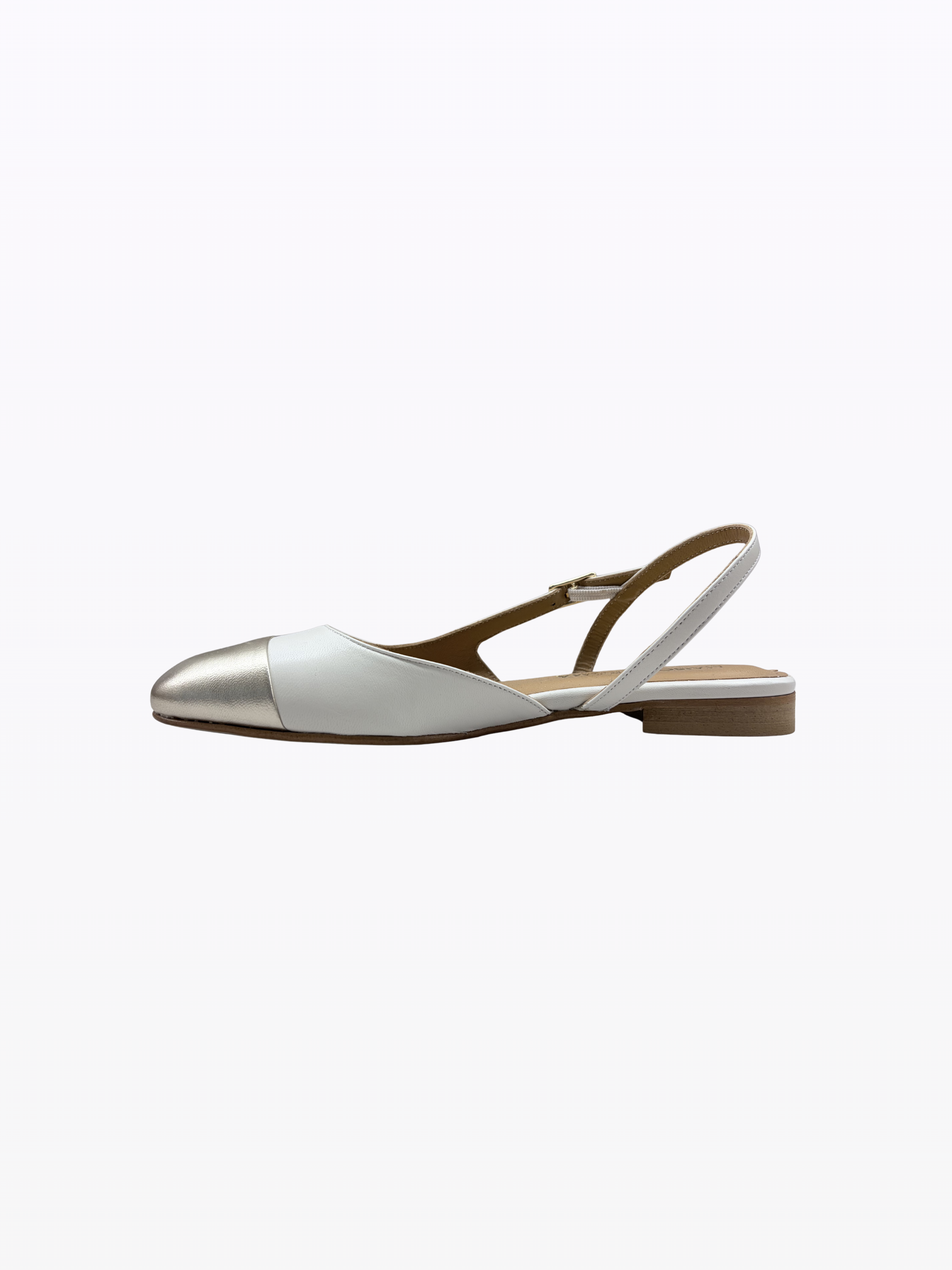 Leather Italian ballerina slingback. Leather lining. 1.5 cm heel. Adjustable back strap. Non-slip leather sole.