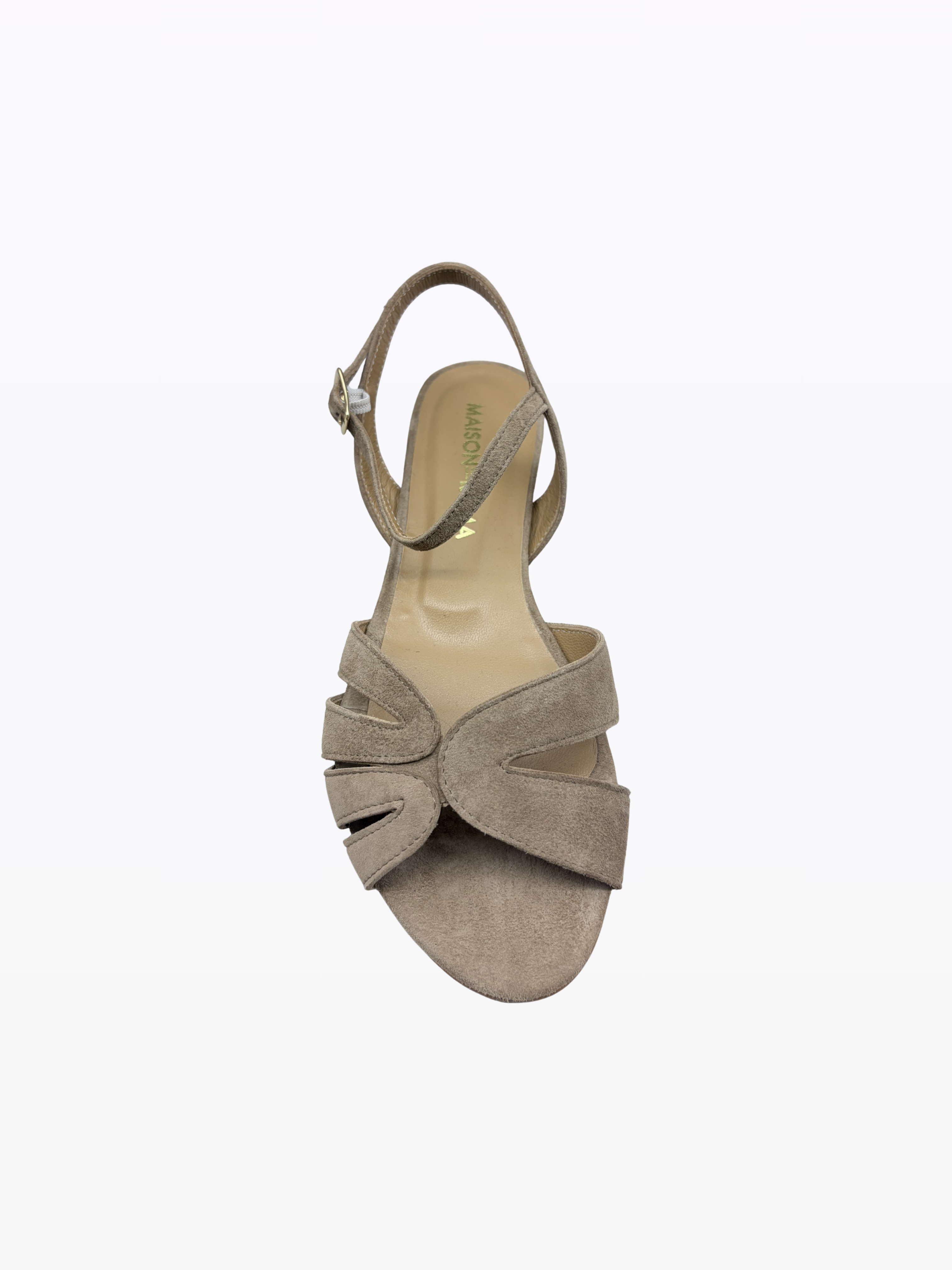 Sandales en daim italien. Doublure cuir. Talon de 2 cm. Semelle légère antidérapante en cuir. Convient à toutes les morphologies.
