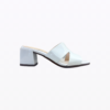 Heeled mules in Italian patent leather. Leather lining. 5 cm wide heel. Lightweight, non-slip leather sole.