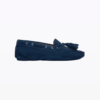Moccasin carshoes with rubber sole and inner heel for a camber of 2 cm. Ideal for preventing back pain from shoes that are too flat. Italian rain-resistant suede calfskin, leather lining. Suitable for all body types and sensitive feet.
