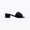 Mules à talon en cuir et veau velours italien. Doublure cuir. Talon large de 3 cm. Semelle légère antidérapante en cuir.