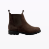 Bottines à talon 5 cm en veau velour italien. Elastiques latéraux façon cavalière. Doublure cuir et semelle en cuir et gomme naturelle isolante et anti-glisse. WATERPROOF.