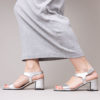 Sandales transparentes avec cuir de veau vernis italien. Ultra confortables et idéales à porter au bord de la piscine ! Semelle en cuir résistant à tous les terrains. Talon large 6 cm stable et parfait pour la cambrure du dos.
