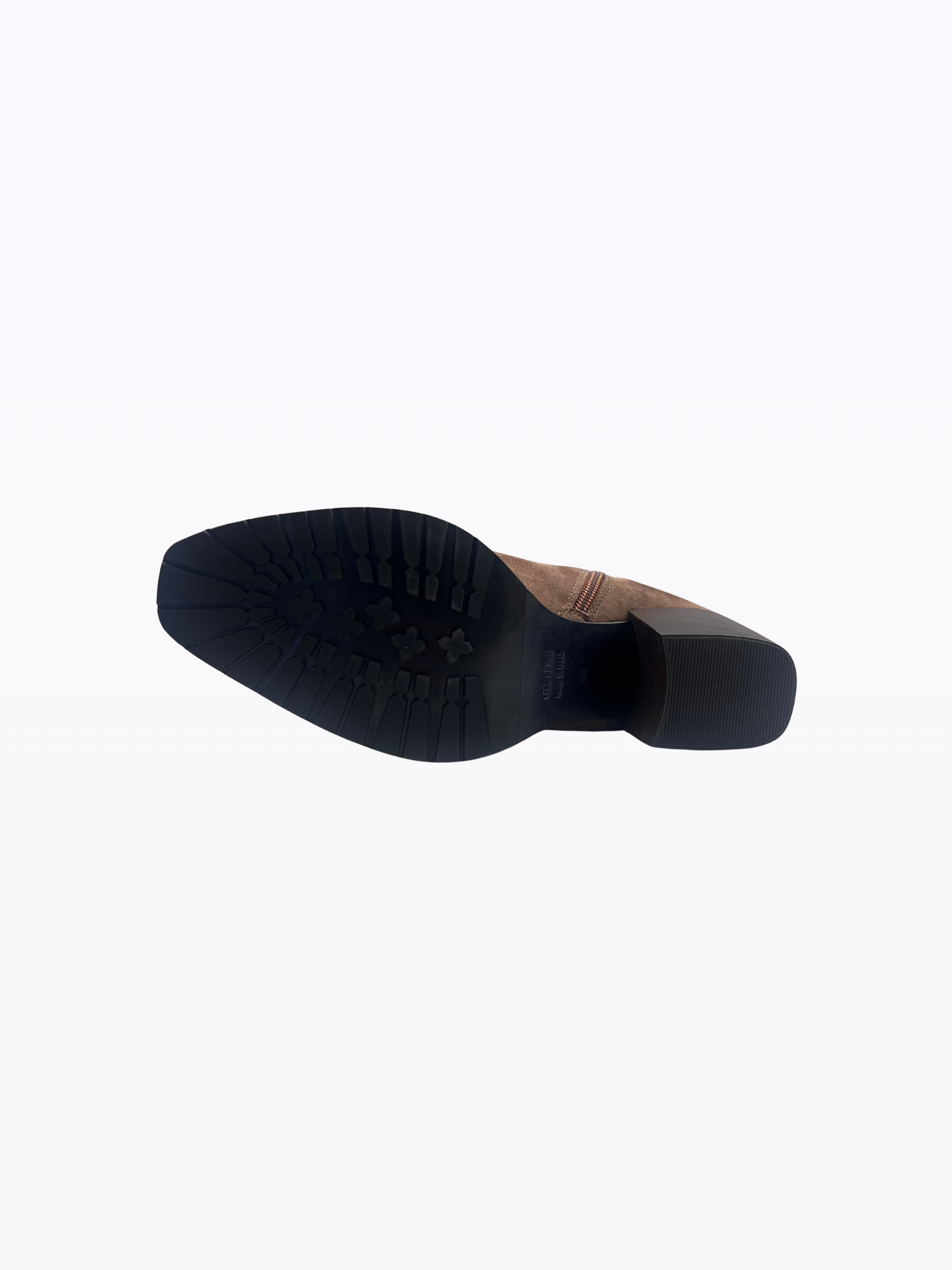 Italian suede boots. Leather lining and internal zip. 5.5 cm heel. Non-slip, insulating half-gum sole. Height 21 cm. Rain-resistant.