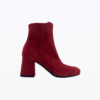 Bottines à talon en daim italien. Talon de 7 cm et hauteur de 19,5 cm. Doublure en cuir et semelle en gomme anti-glisse et isolante. Zip interne.