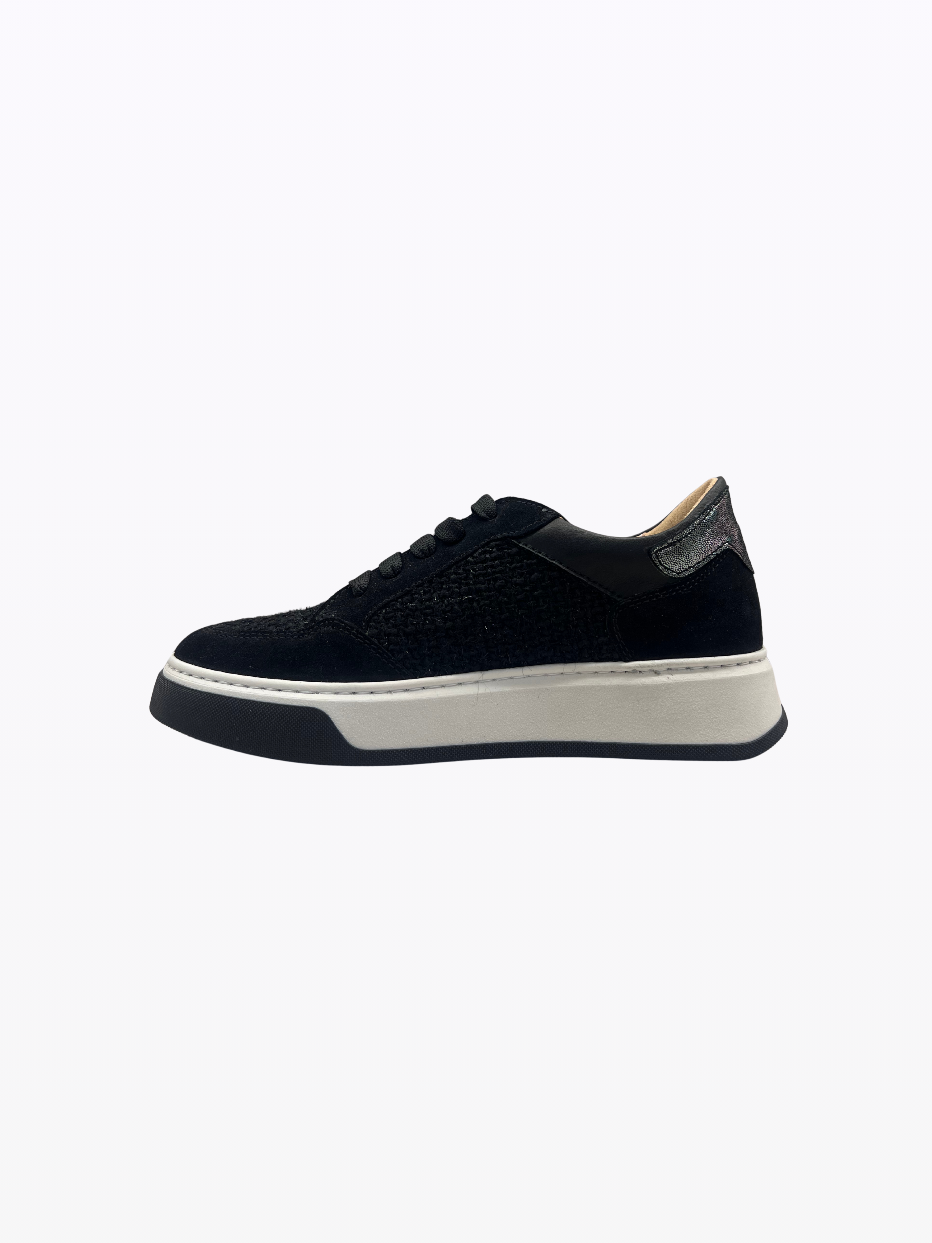 Baskets en cuir et tissu italien. Doublure en cuir. Semelle interne amovible et semelle externe en gomme. Talon compensé de 3,5 cm. Ultra confortable, convient à toutes les morphologies.