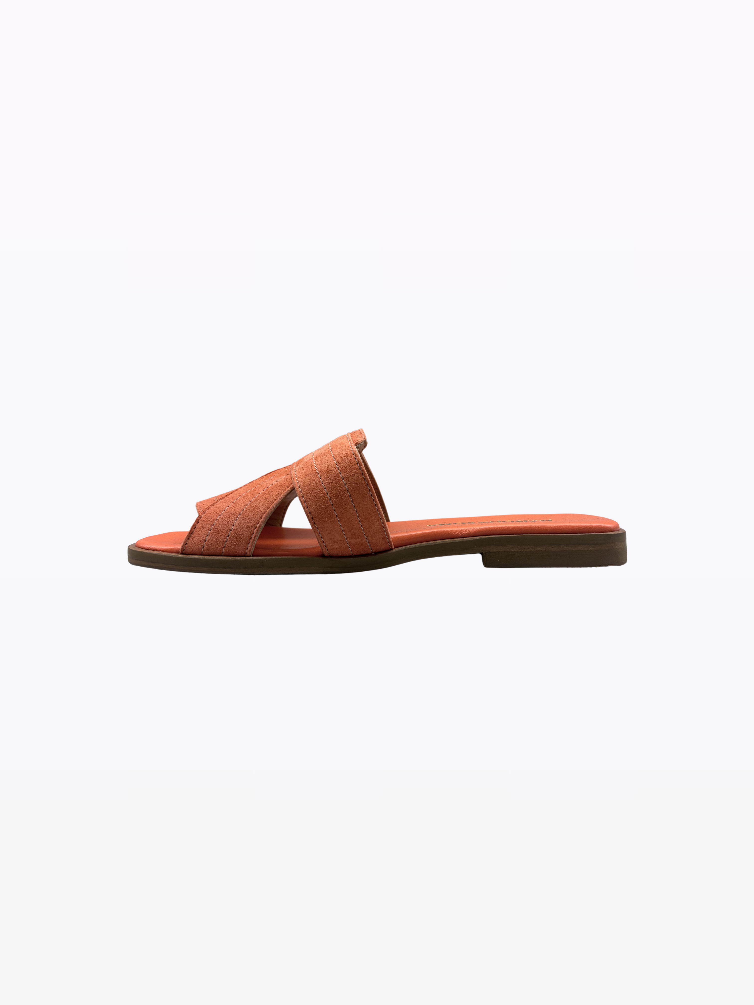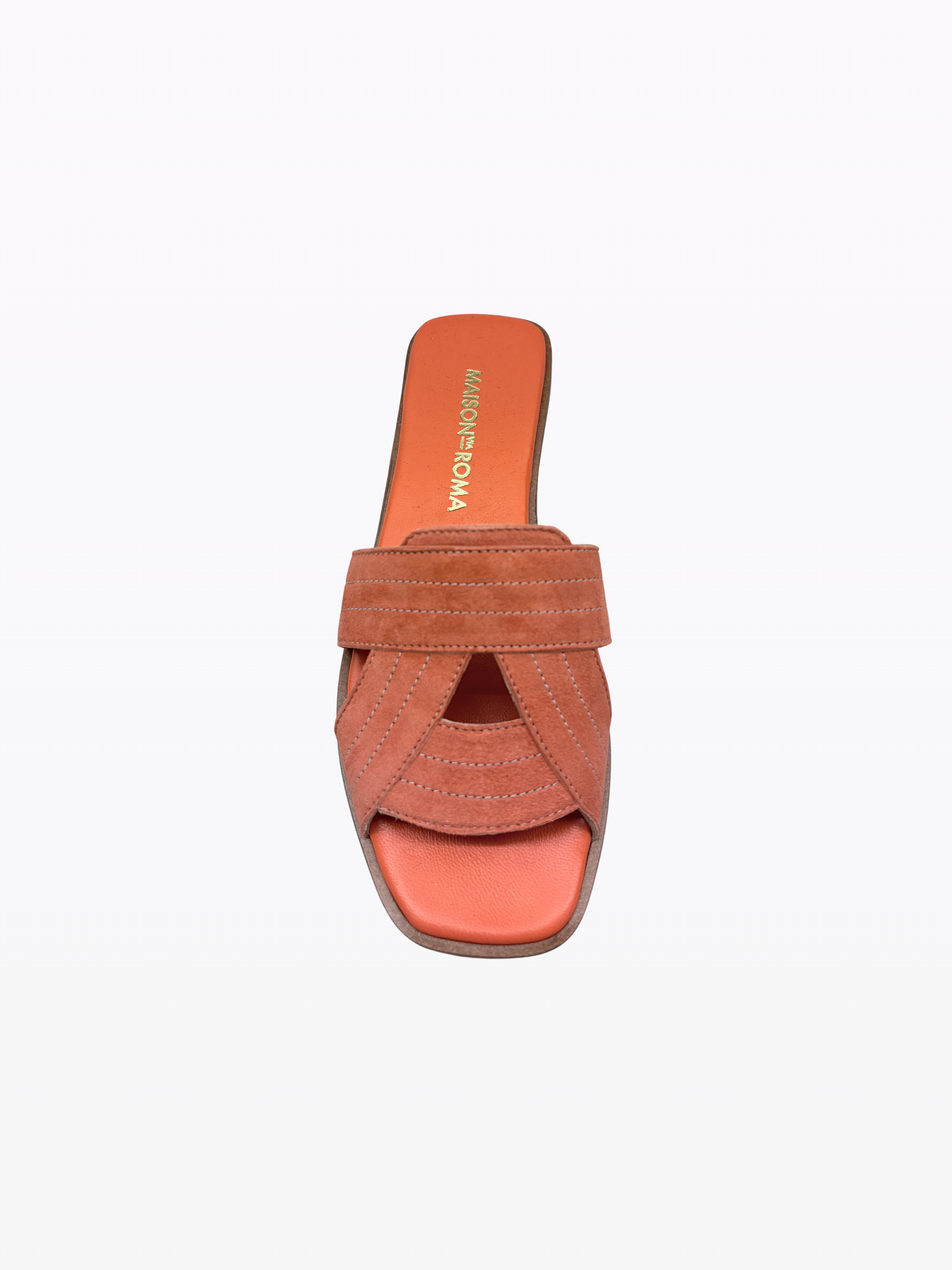 Mules en daim italien. Doublure en cuir. Talon de 2 cm. Semelle en cuir.