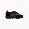 Baskets en daim et cuir de veau vernis italien. Doublure en cuir. La semelle est compensée de 2,5 cm à l’arrière pour protéger le dos et alléger la démarche. Vous allez adorer son confort et sa légèreté tout en étant rehaussée de quelques centimètres. Résistant à la pluie.