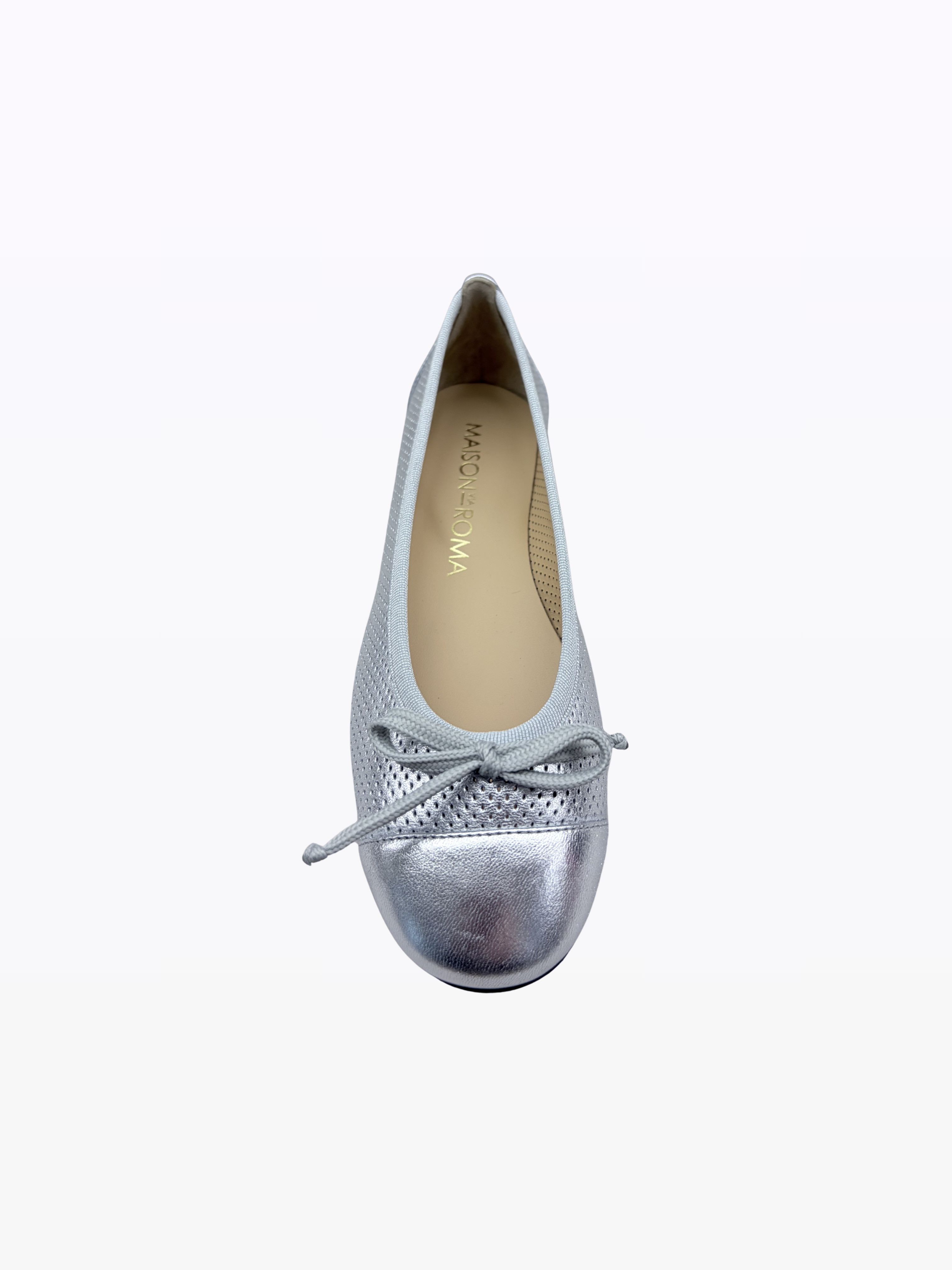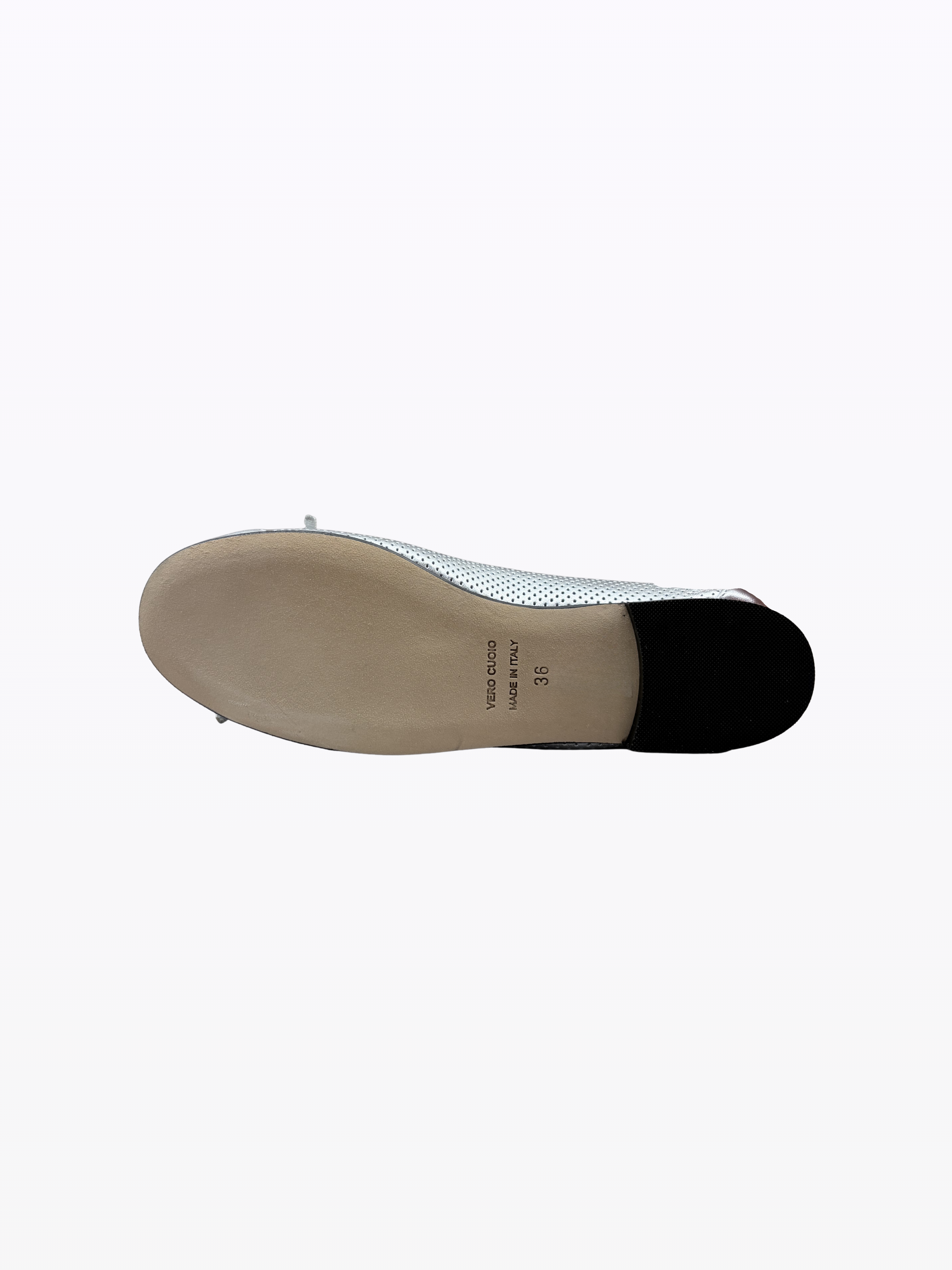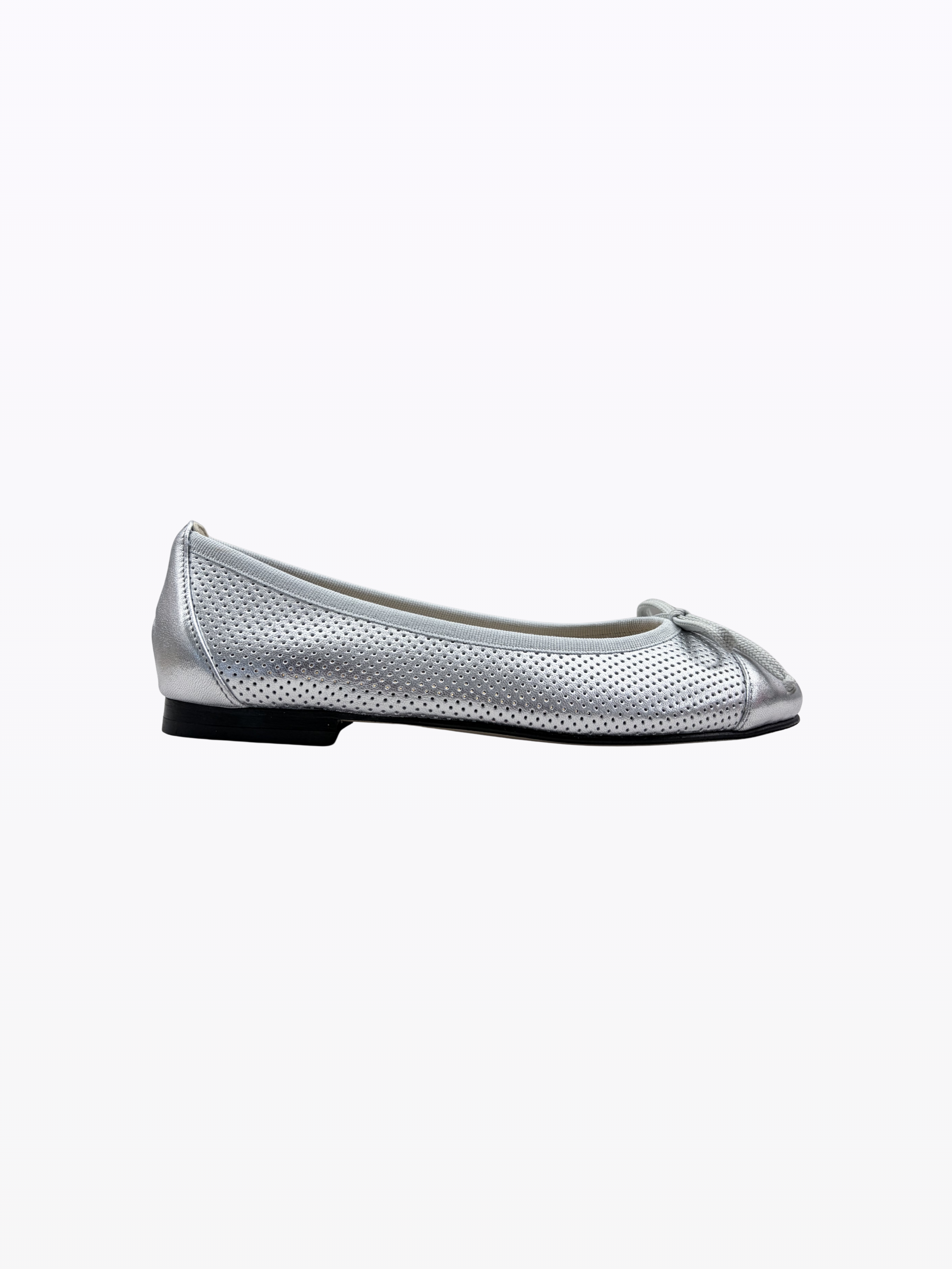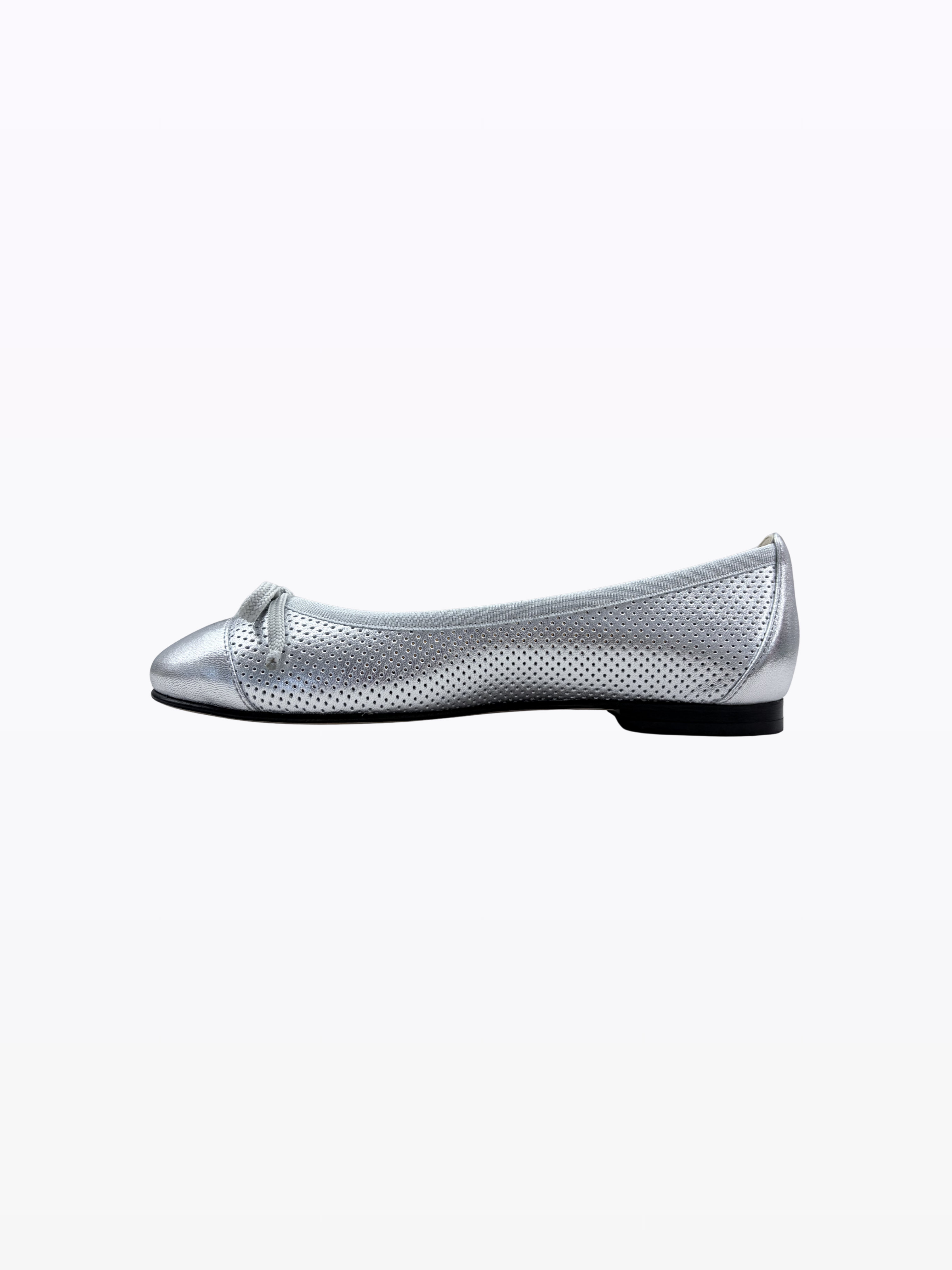 Barefoot effect ballerina ideal for all body types. Perforated Italian leather, leather lining. 1 cm heel. 4 seasons leather sole. Resists rain.