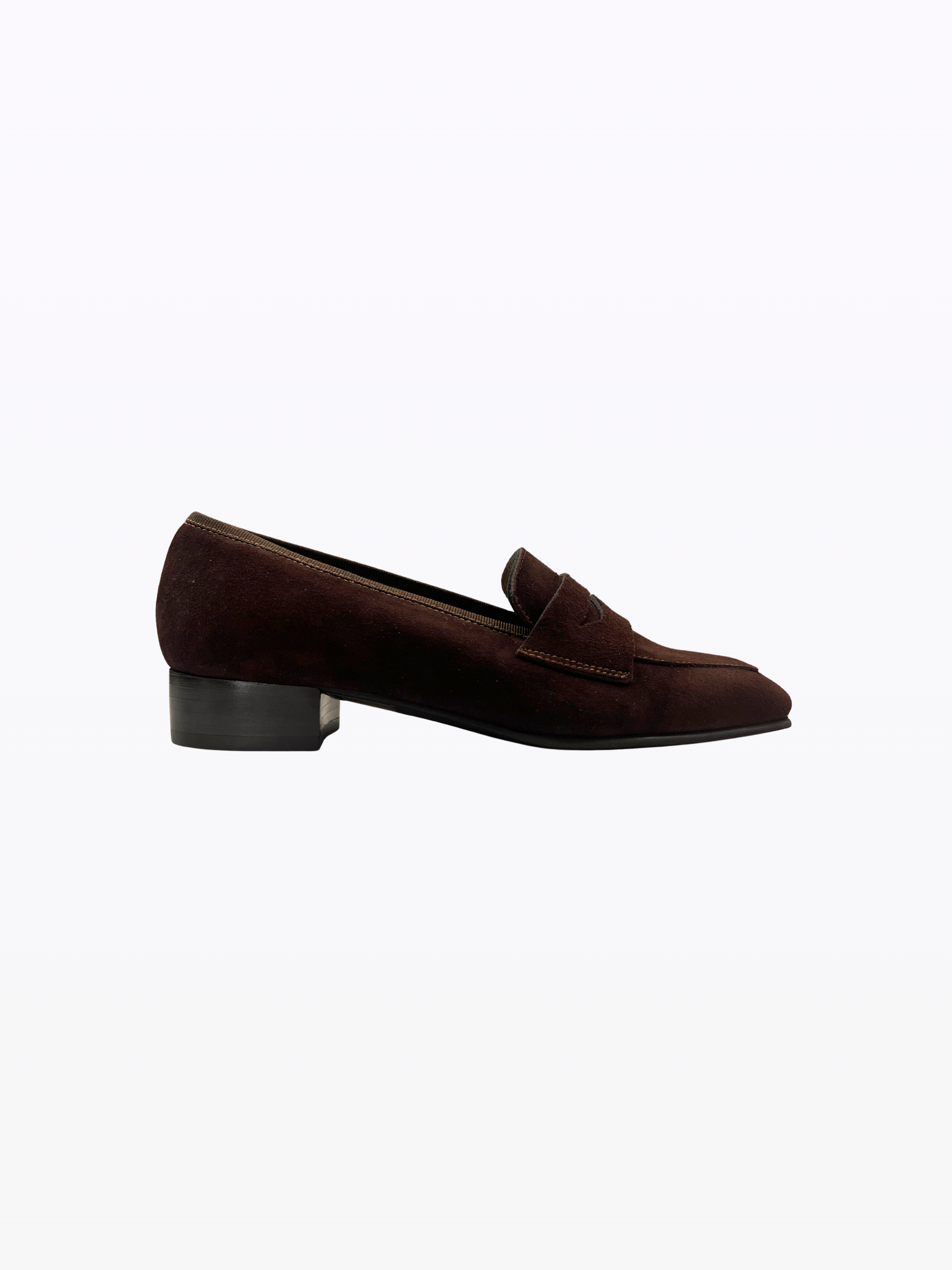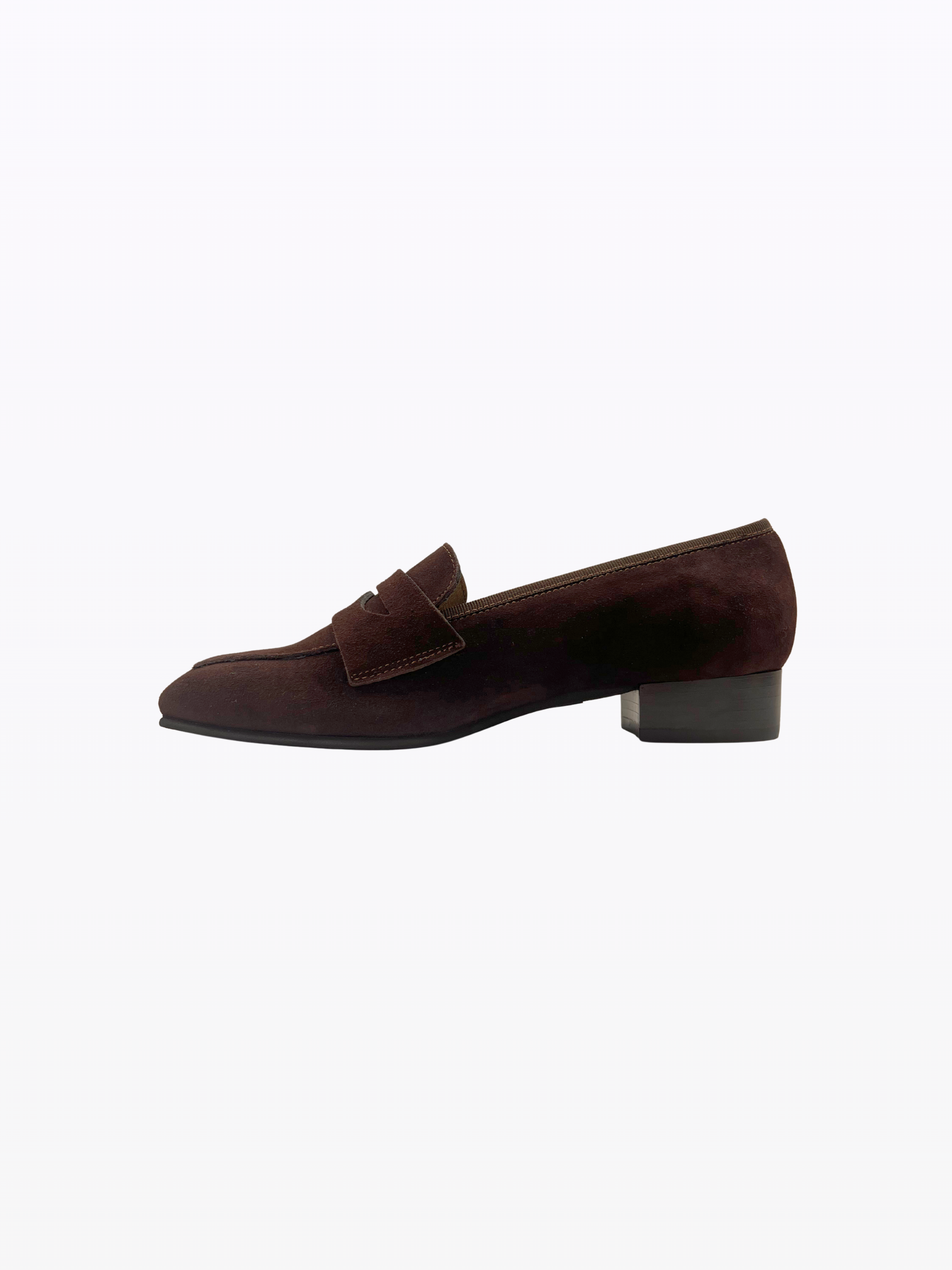 Mocassin en veau velour et cuir italien souple et résistant à la pluie. Talon 2,5 cm. Doublure en cuir. Semelle en cuir fine et isolante. Convient à toutes les morphologies et aux pieds sensibles.