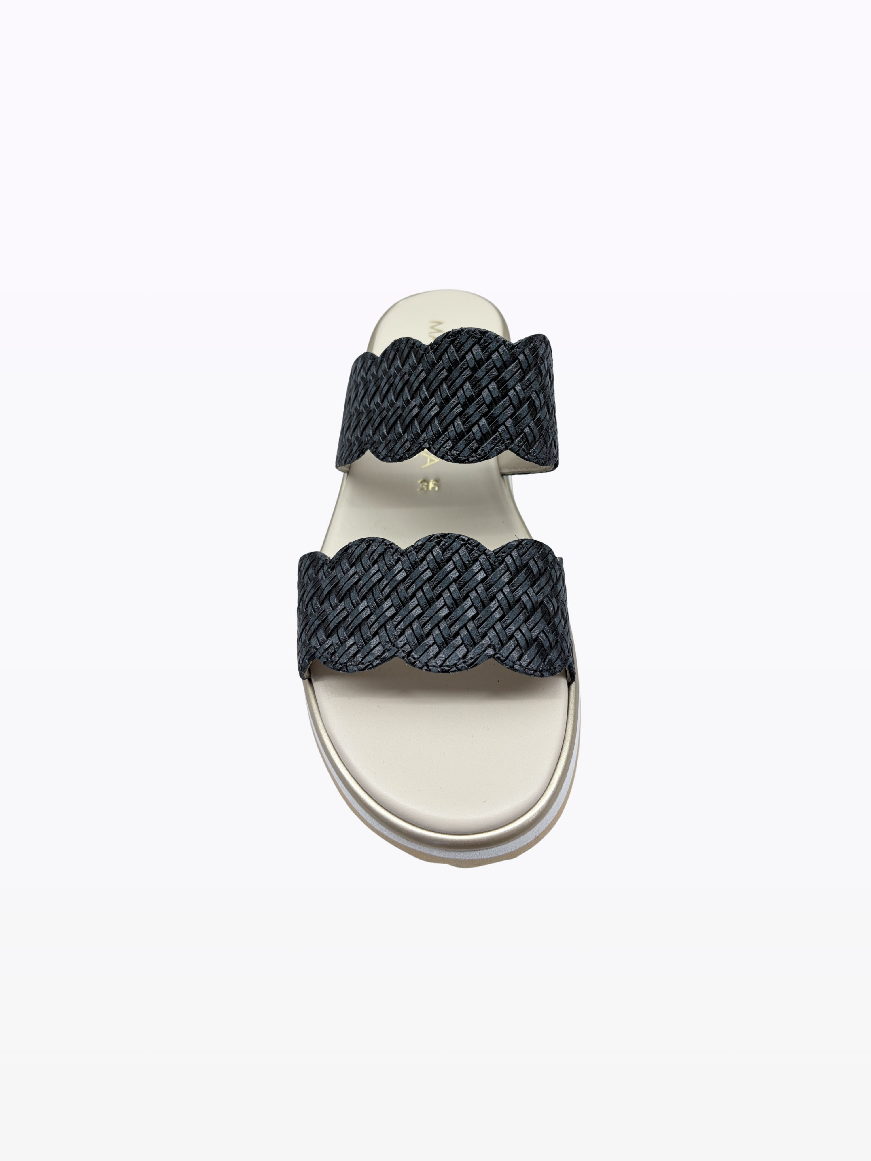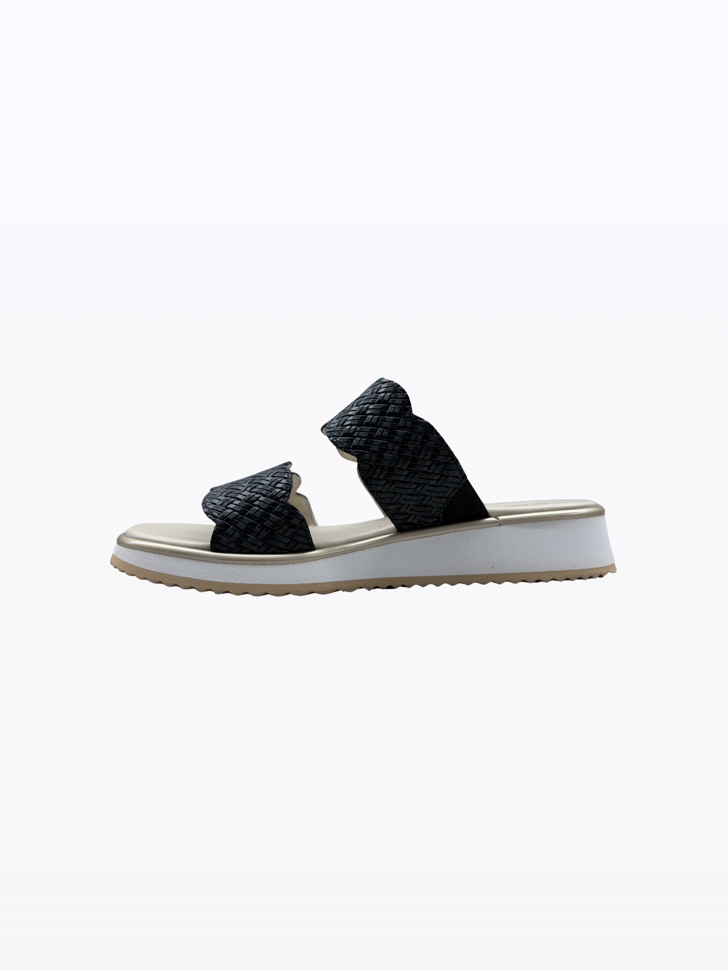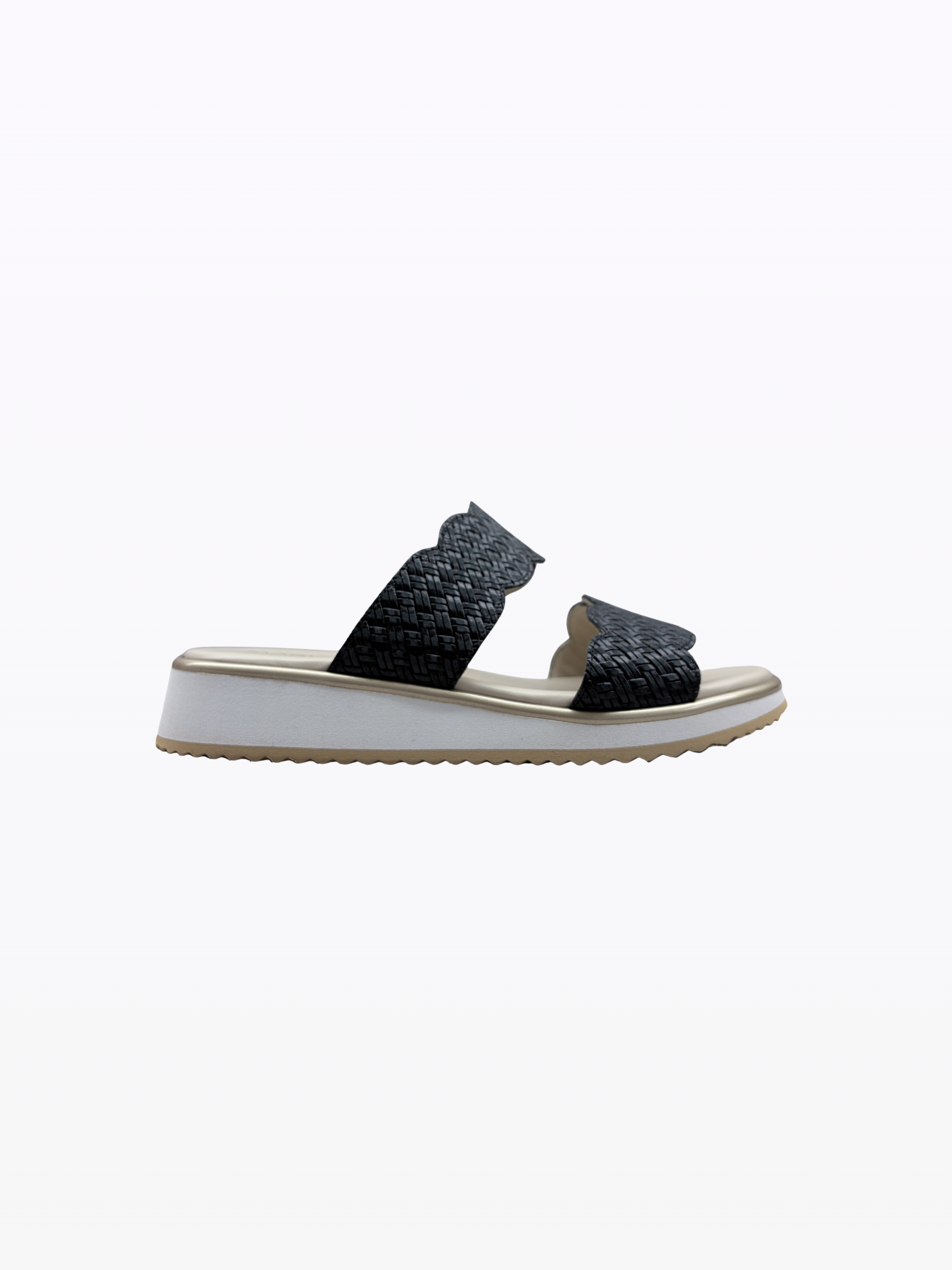 Mules en daim italien. Doublure en cuir. Talon compensé de 3 cm. Semelle externe en gomme anti-glisse. Légère, ces nu-pieds sont idéales pour les pieds sensibles.