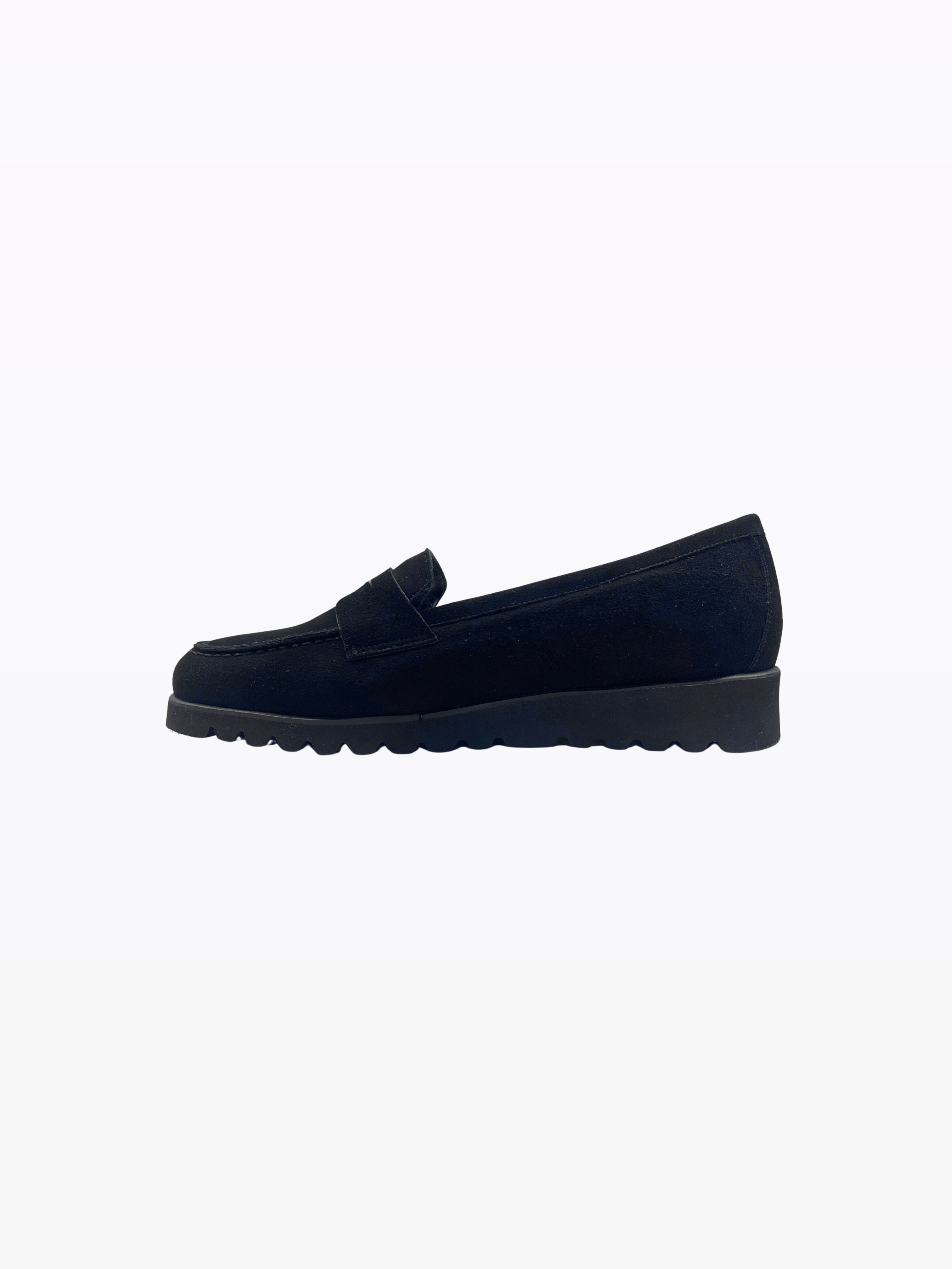 Mocassin chaud en daim italien. Grâce à sa doublure en agneau, vous avez les pieds au chaud. Semelle compensée avec cambrure idéale pour le dos. Ultra confortable et cosy.