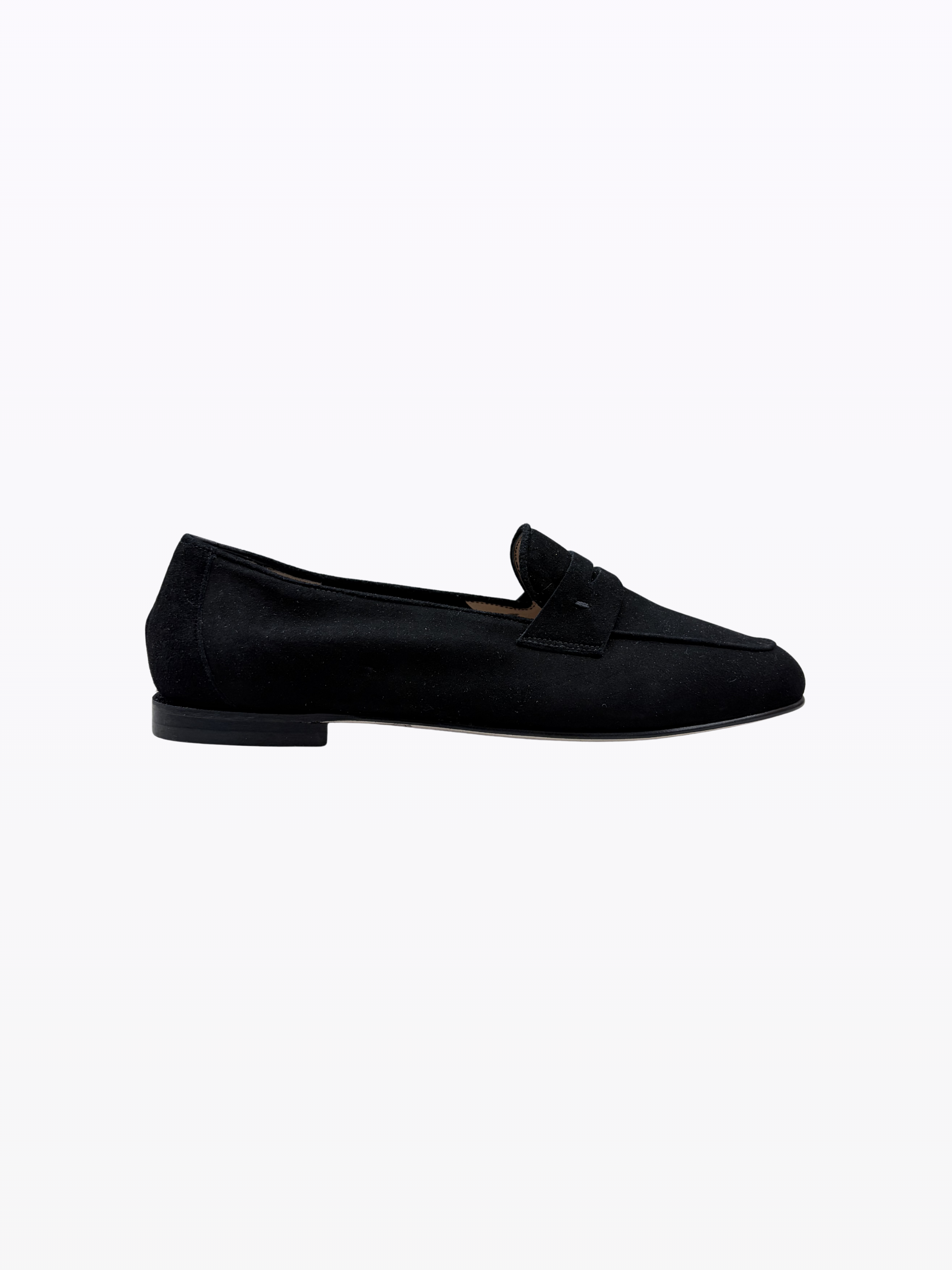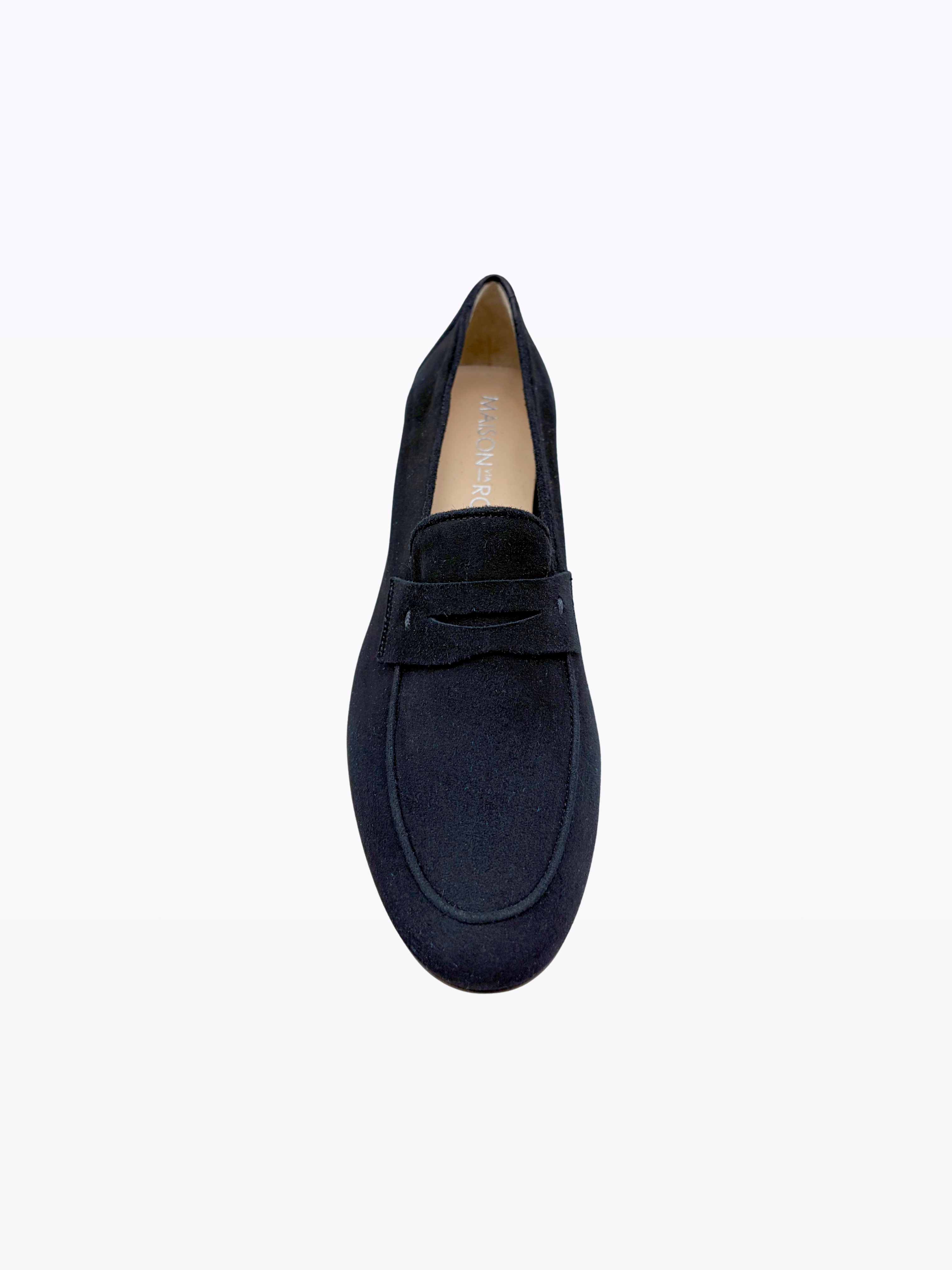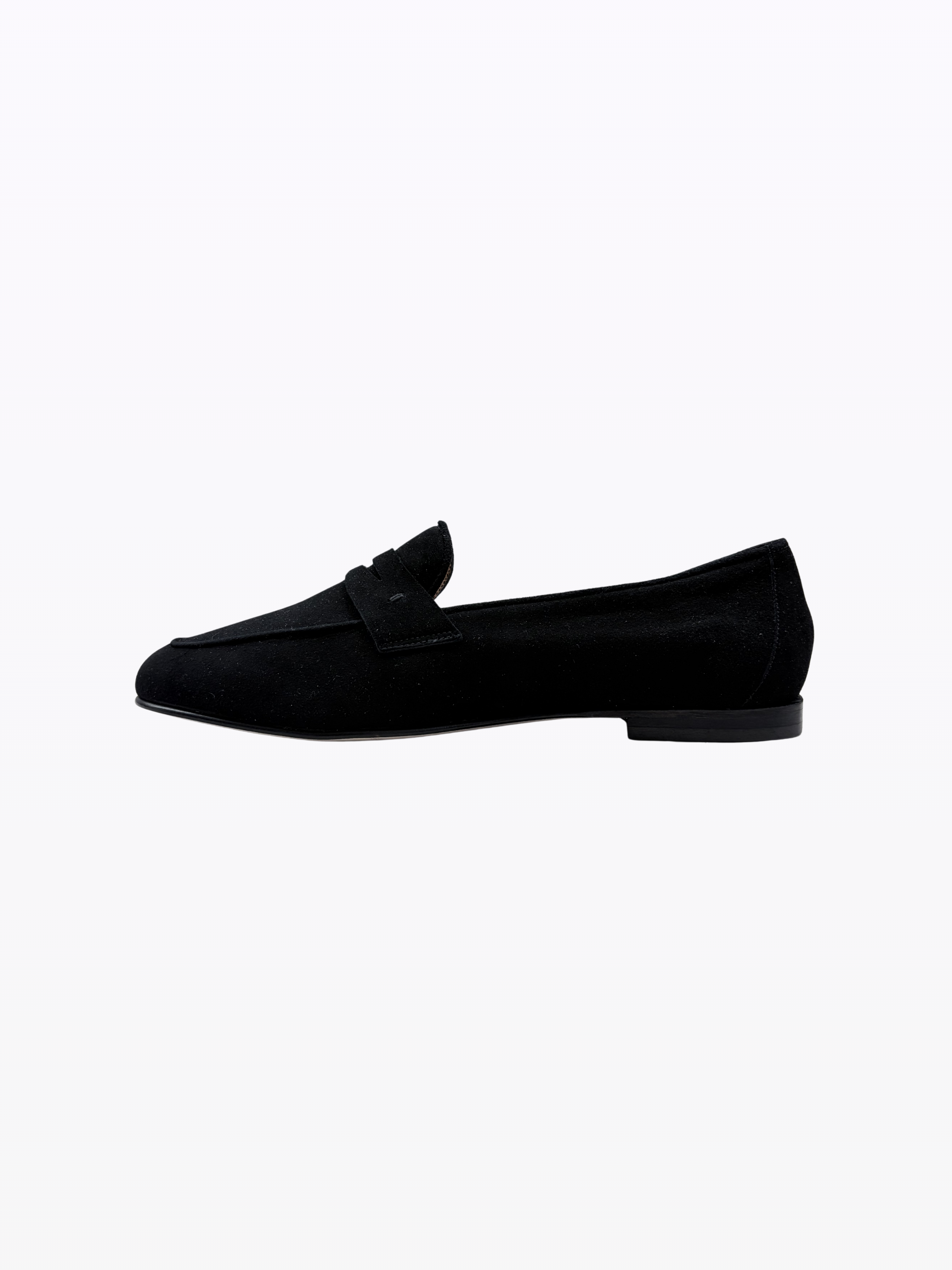 Mocassin en daim italien souple. Doublure en daim et cuir. Talon de 1,5 cm. Semelle isolante en cuir. Idéal porté pieds nus. Convient à toutes les morphologies et aux pieds sensibles.