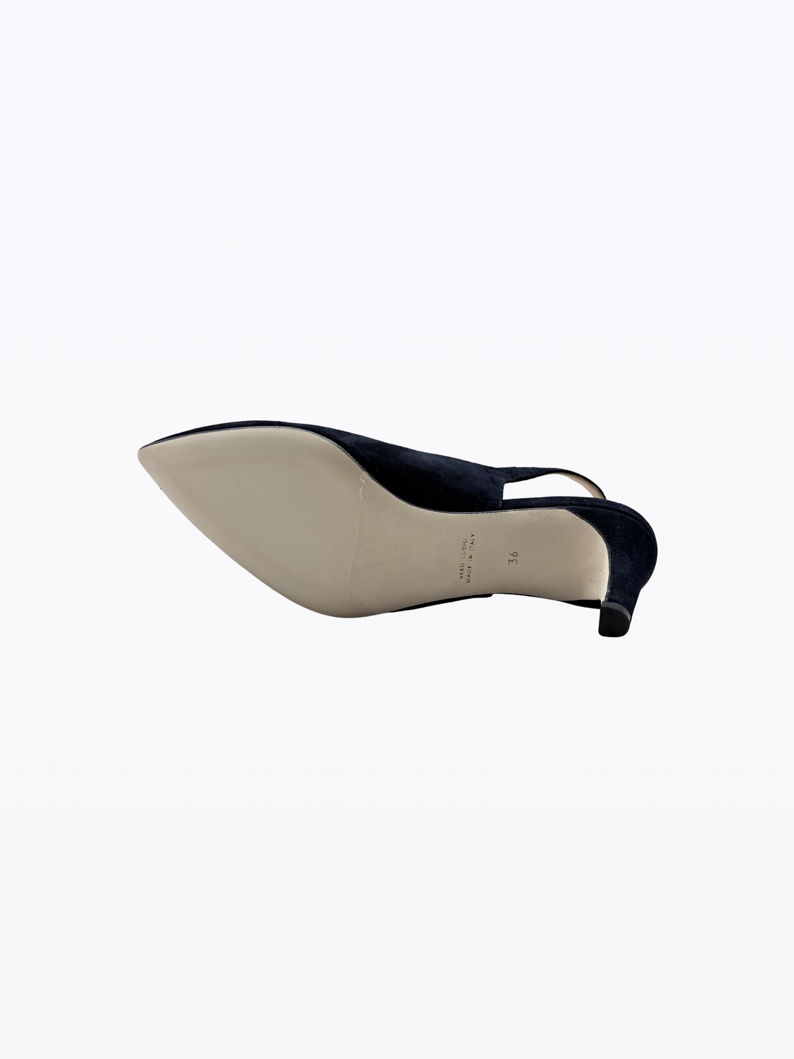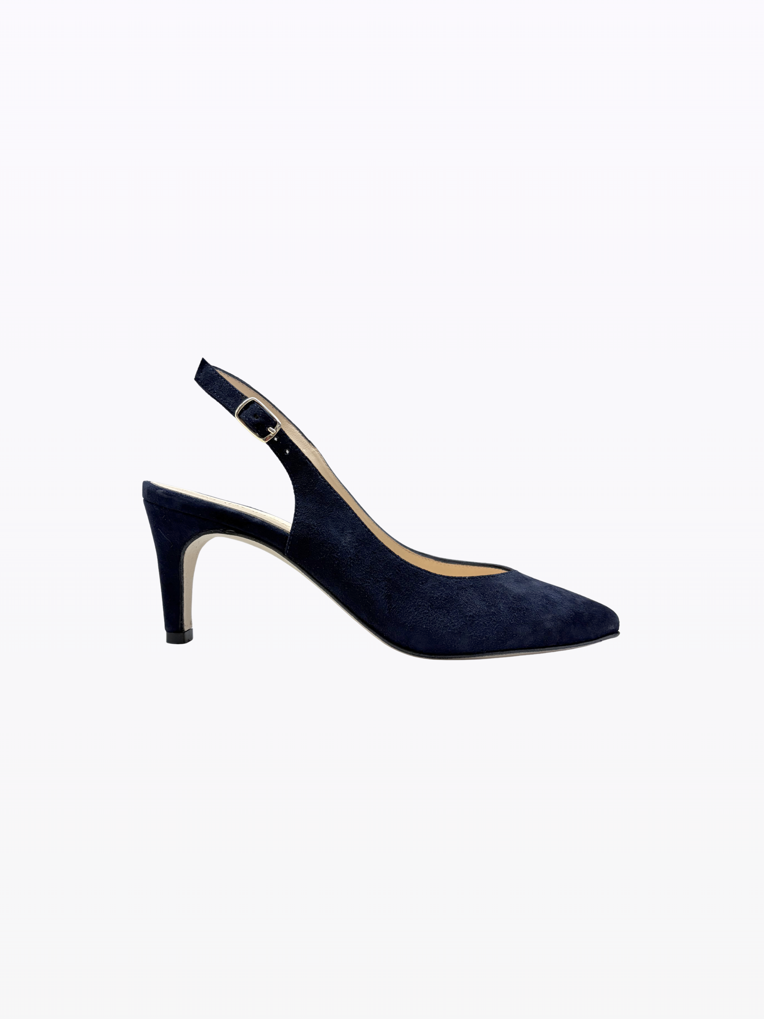 Sandales à talon de 7 cm en daim italien hydrofuge. Doublure en cuir. Brides ajustables. Semelle en cuir 4 saisons isolante. Résiste à tous les temps et convient à toutes les morphologies.