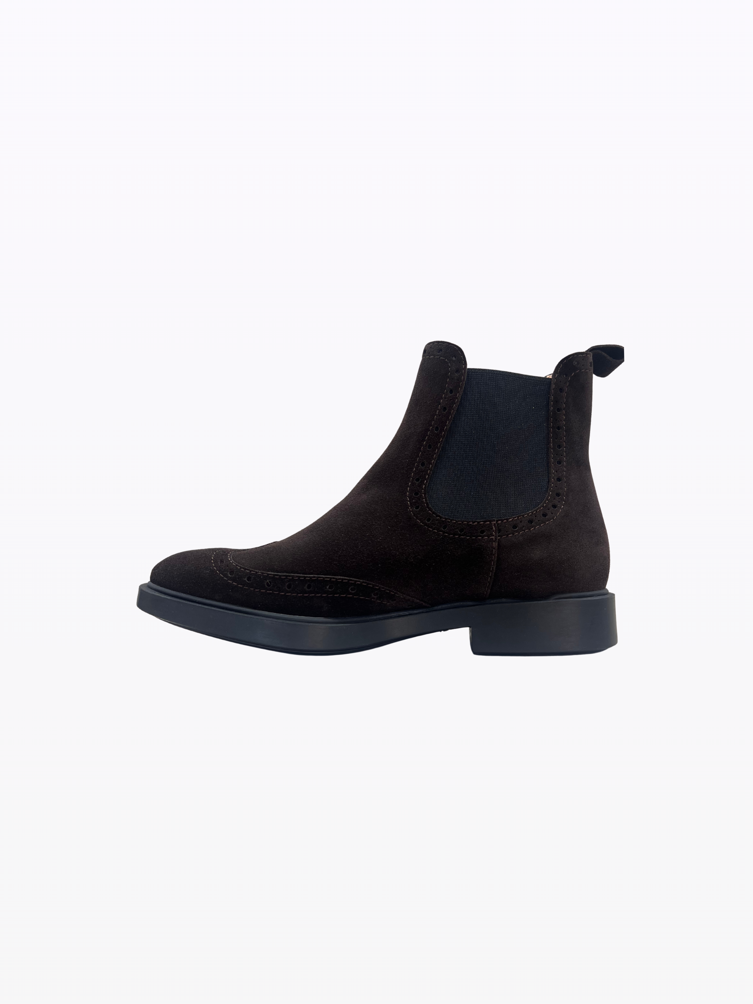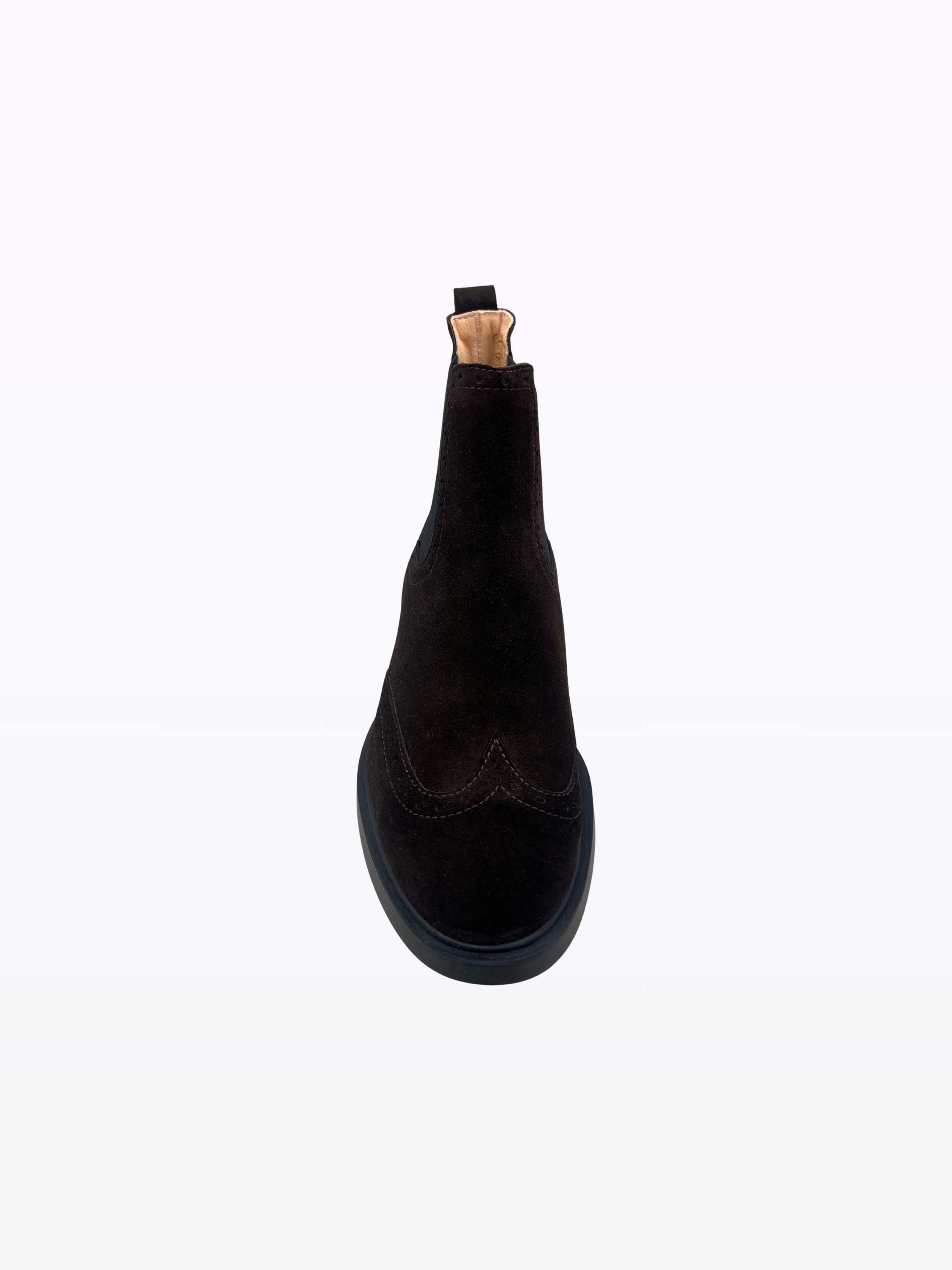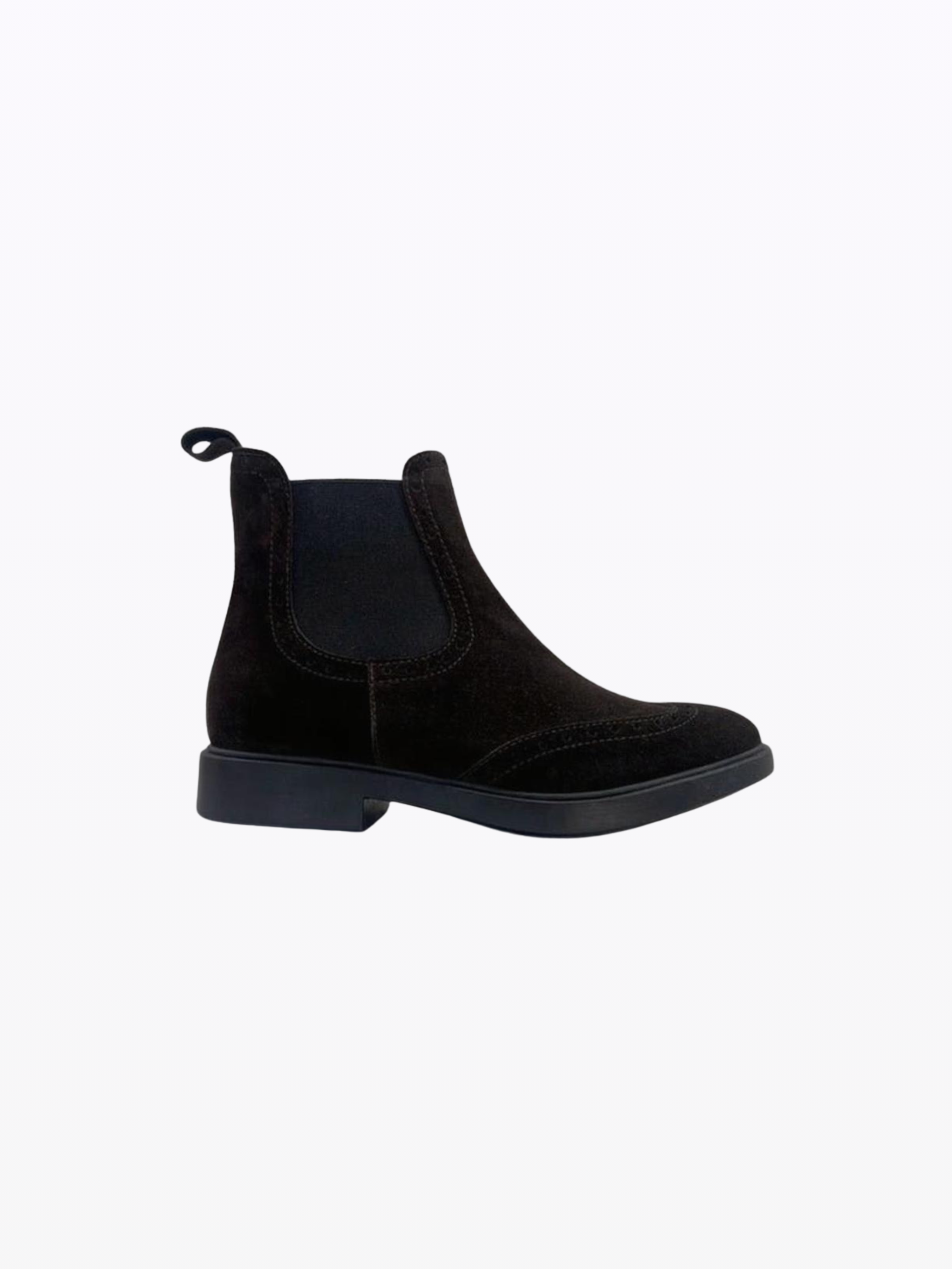 Italian suede ankle boots. 2,5 cm heel, 16 cm height and leather lining. Anti-slip and insulating rubber sole. Resists rain.