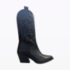 Bottes santiags en veau velours italien. Doublure et semelle en cuir anti-glisse et isolante. Talon de 6,5 cm. Hauteur de 44 cm. Tour de mollet 36 cm.