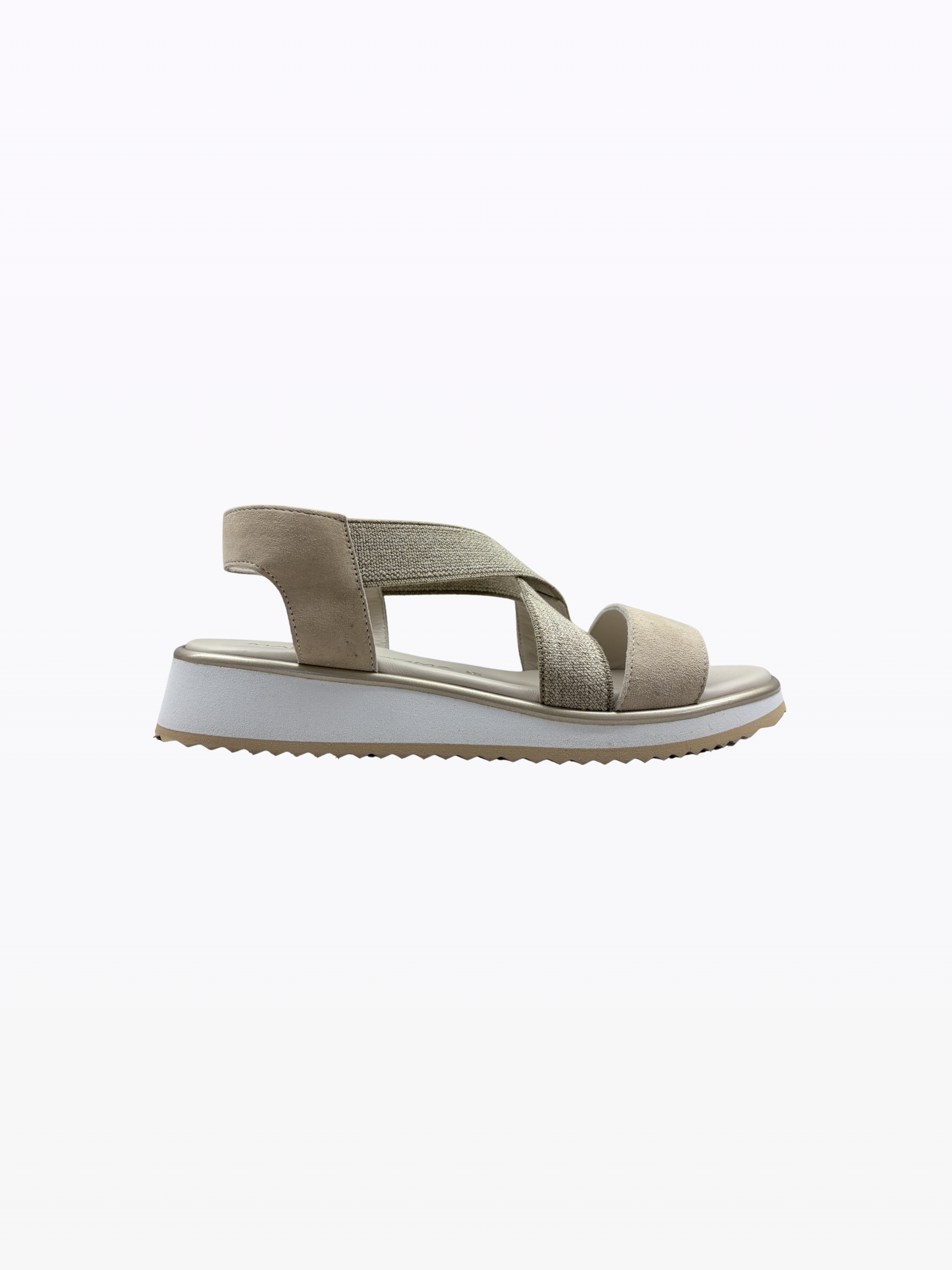 Sandales en daim italien avec élastique. Doublure en cuir. Talon de 3 cm. Semelle externe en gomme anti-glisse. Légère, ces sandales sont idéales pour les pieds sensibles.