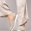 Mocassin compensé en daim avec élastique et Swarovski. Semelle en micro légère et compensée. Doublure cuir. Très confortable et facile à chausser. Daim hydrofuge et traité contre les taches. Convient à toutes les morphologies.
