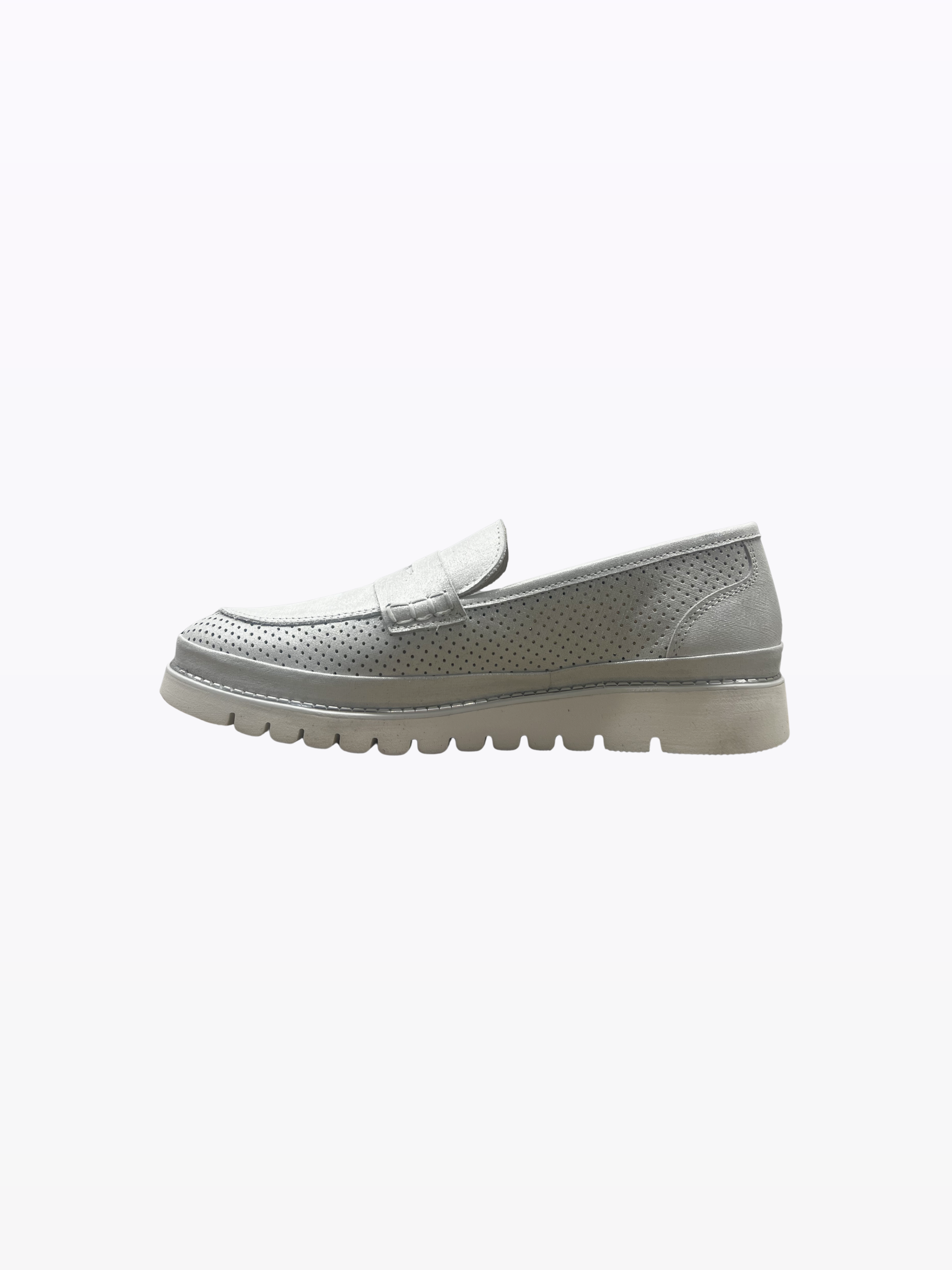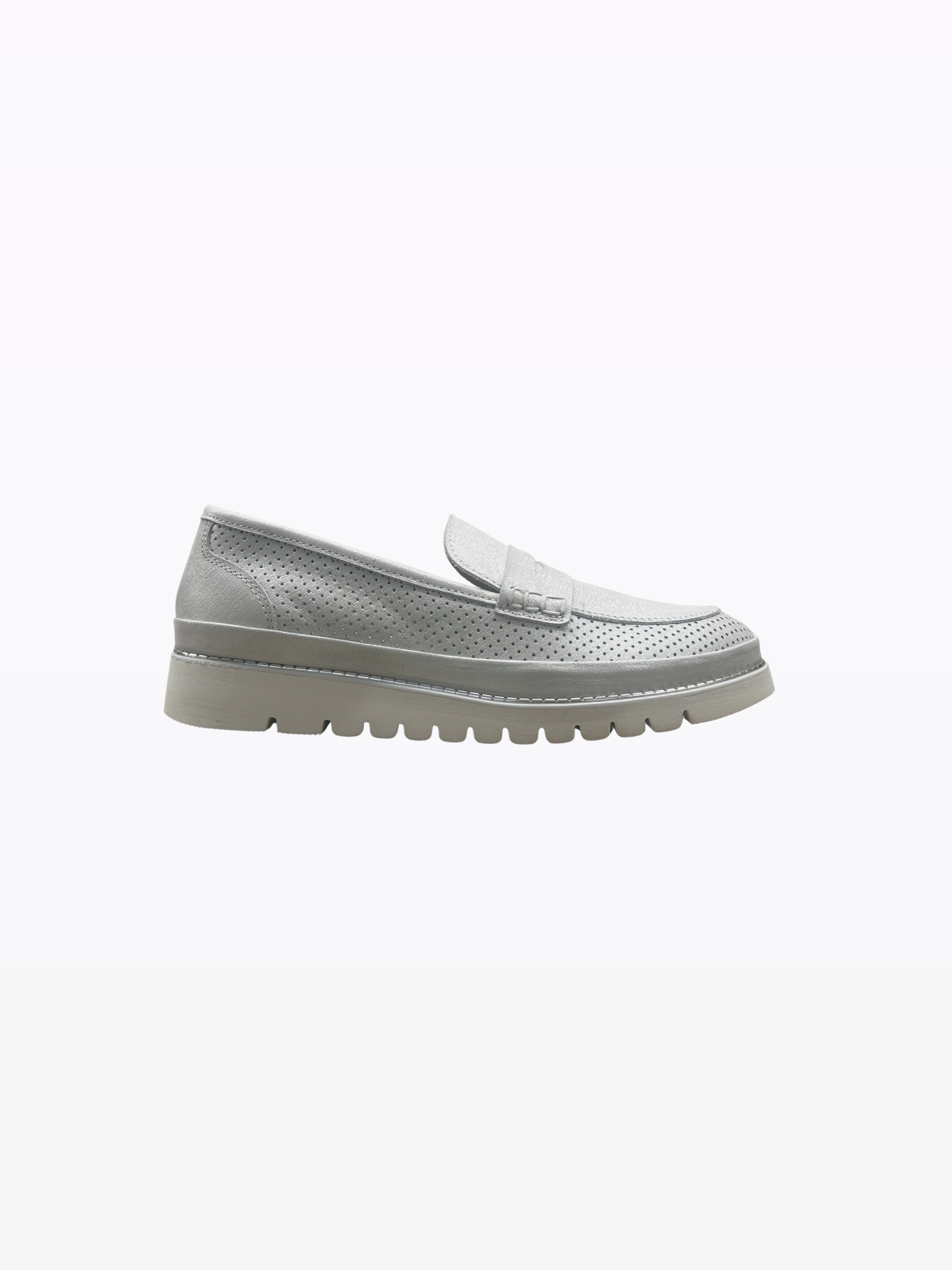 Moccasin in perforated, soft Italian suede. Leather lining, removable insole. 2.5 cm heel. Non-slip, insulating rubber outsole. Comfortable and ideal for sensitive feet.