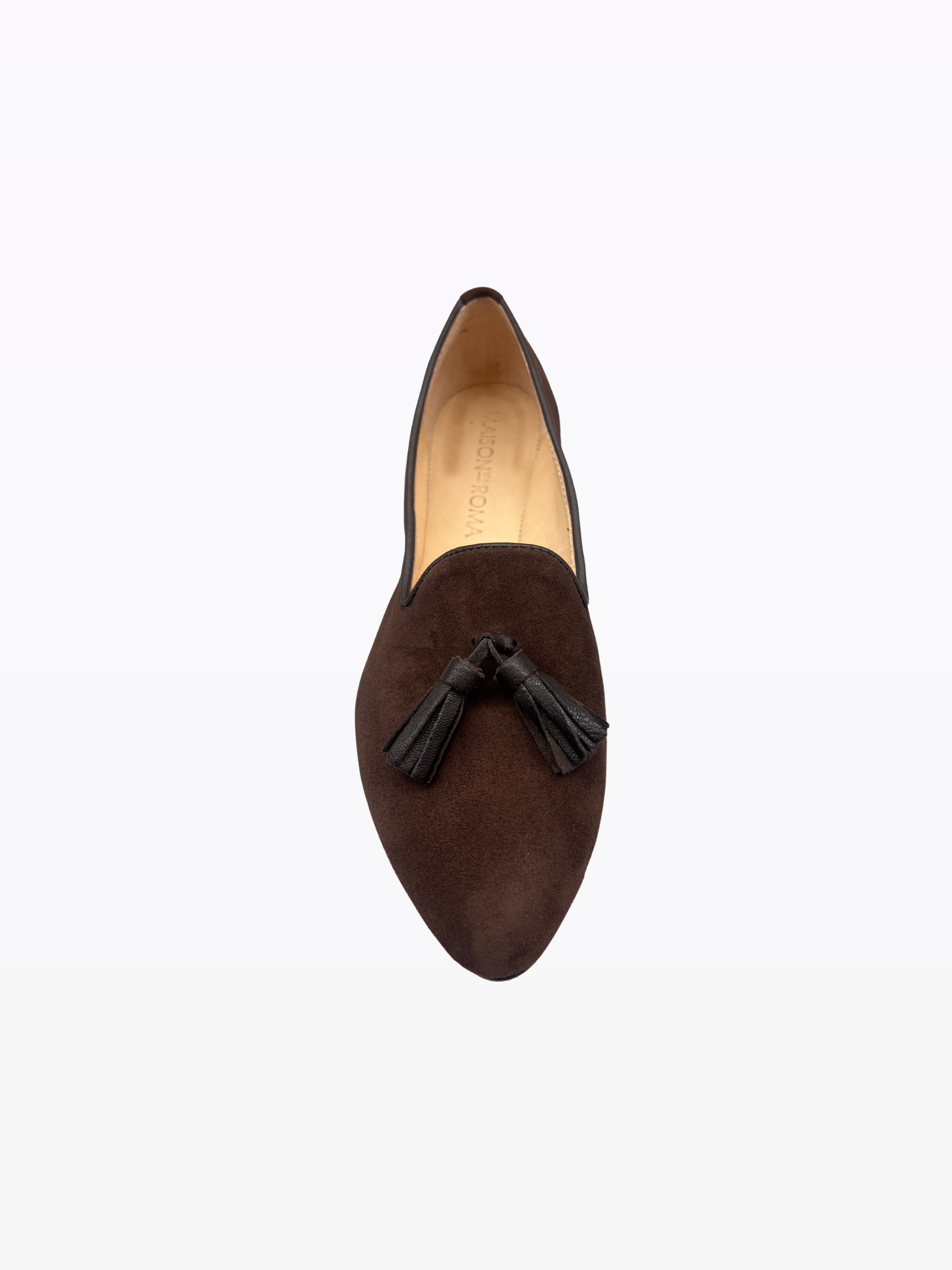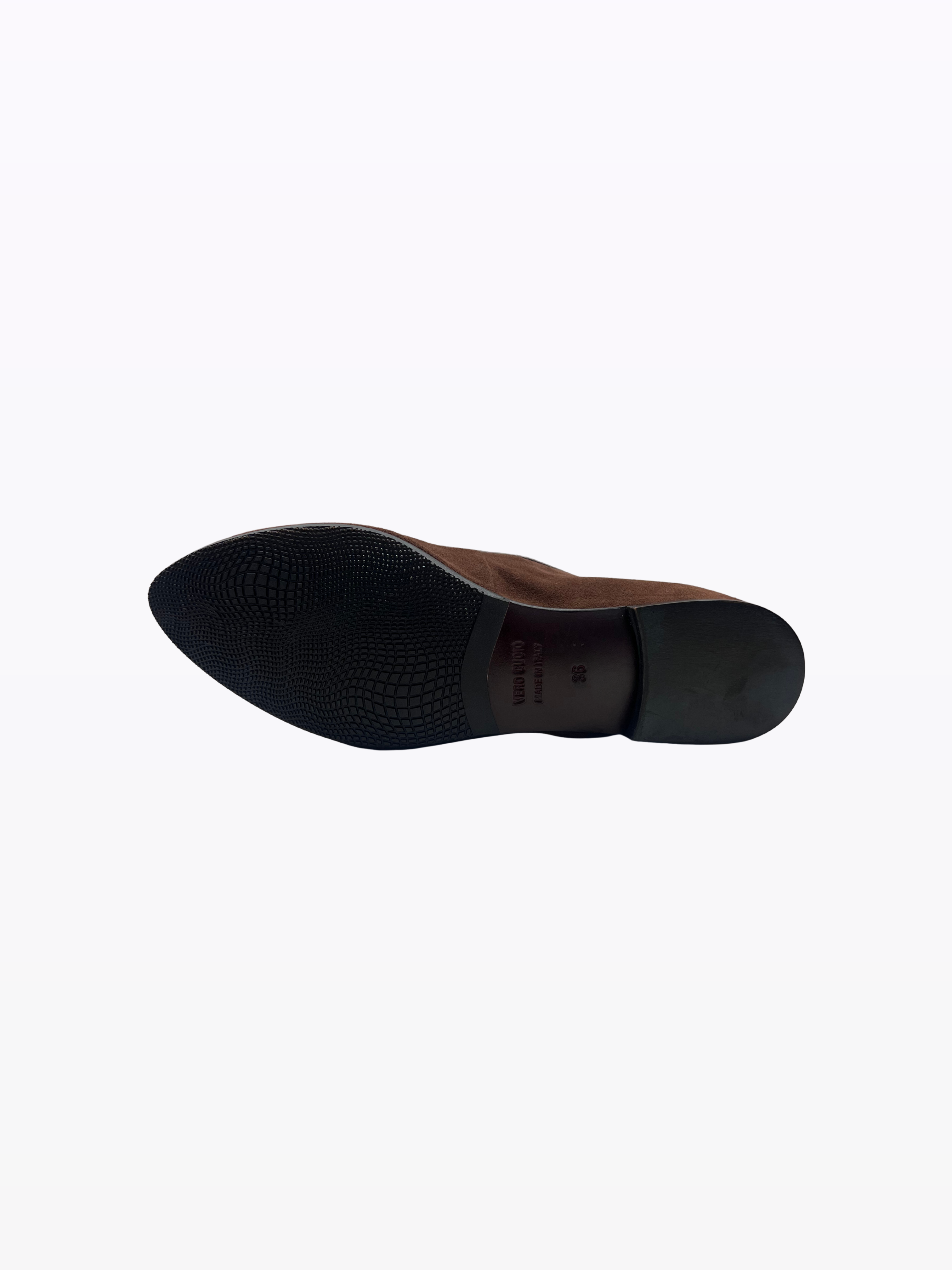Moccasin in ultra soft Italian suede with pointed toe. 1.5 cm heel. Leather lining. Flexible leather and half-gum anti-slip outsole that adapts to foot movement. Suitable for all morphologies and sensitive feet.