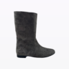 Botte en daim italien, résistante à tous les temps. Doublure en cuir, semelle en cuir et gomme anti-glisse et isolante. Talon de 1,5 cm. Hauteur 27 cm.