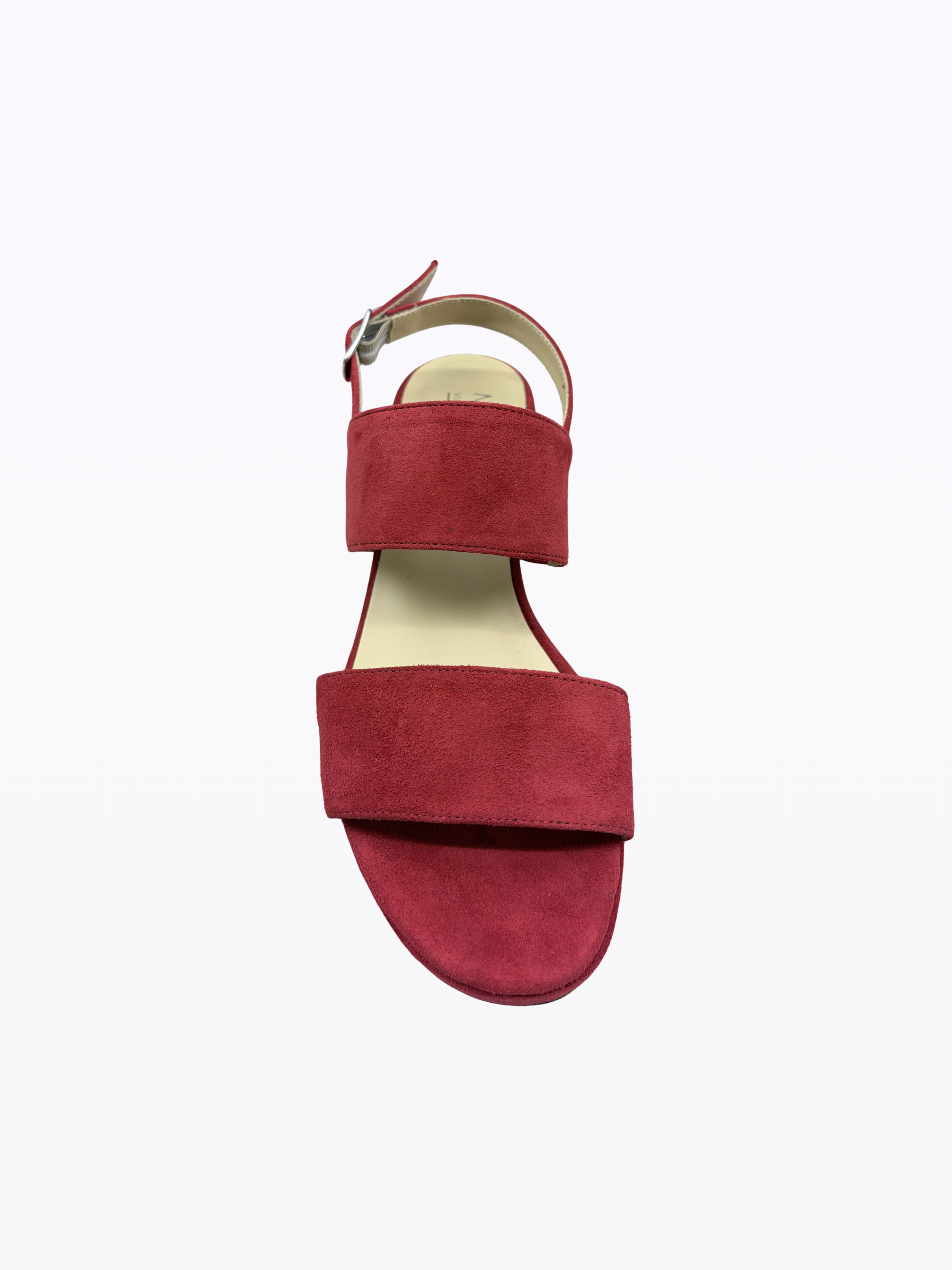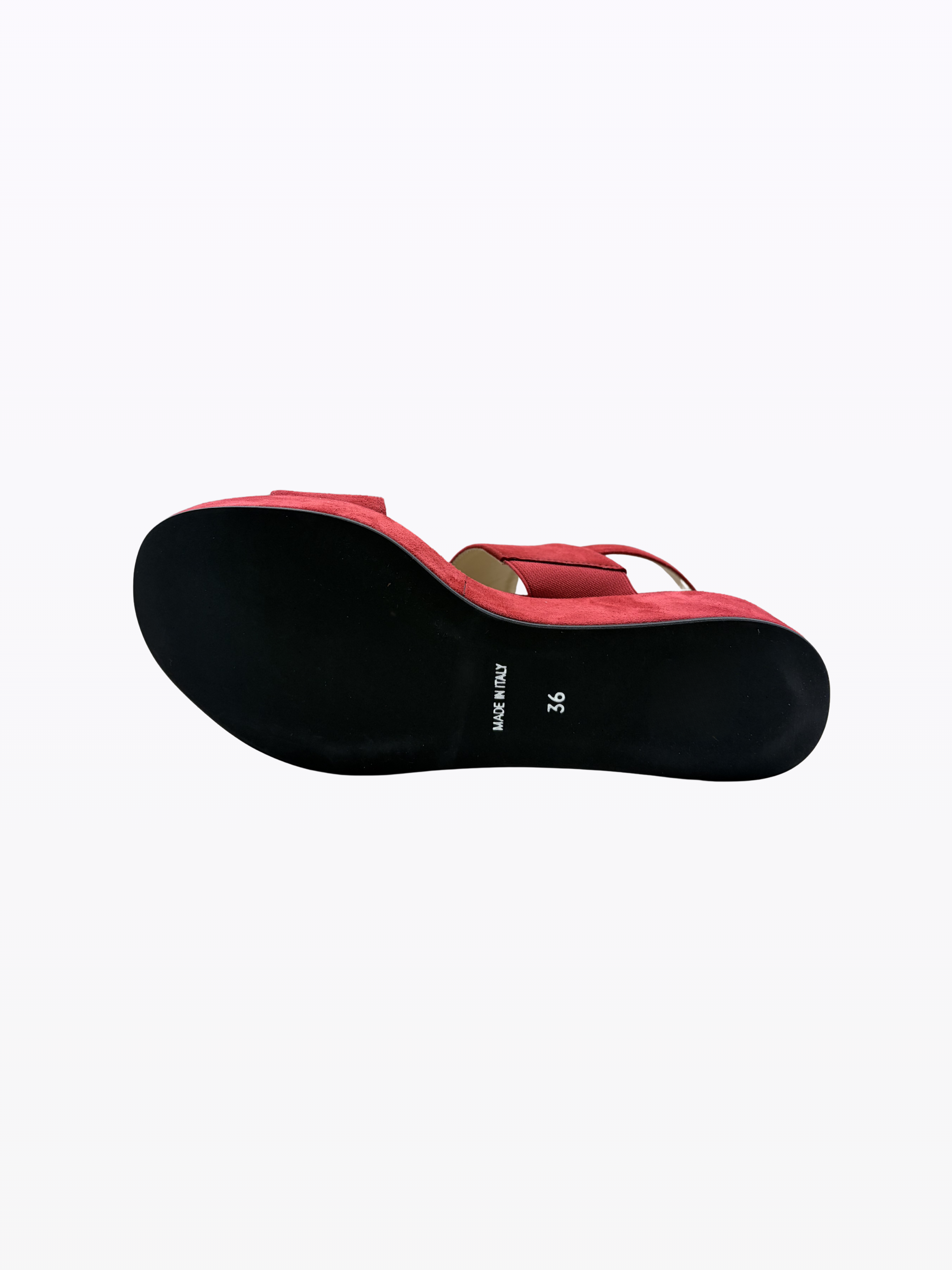 Compensated sandals in Italian suede. Lining in leather. Heel of 5 cm. Elastic and adjustable back strap. Comfortable with the memory foam insole. The flexibility of the material ensures comfort for all morphologies.