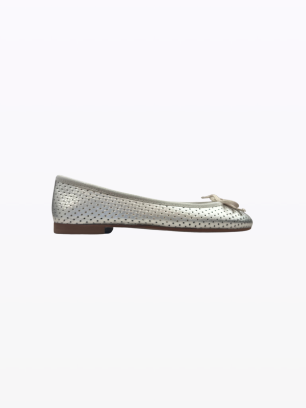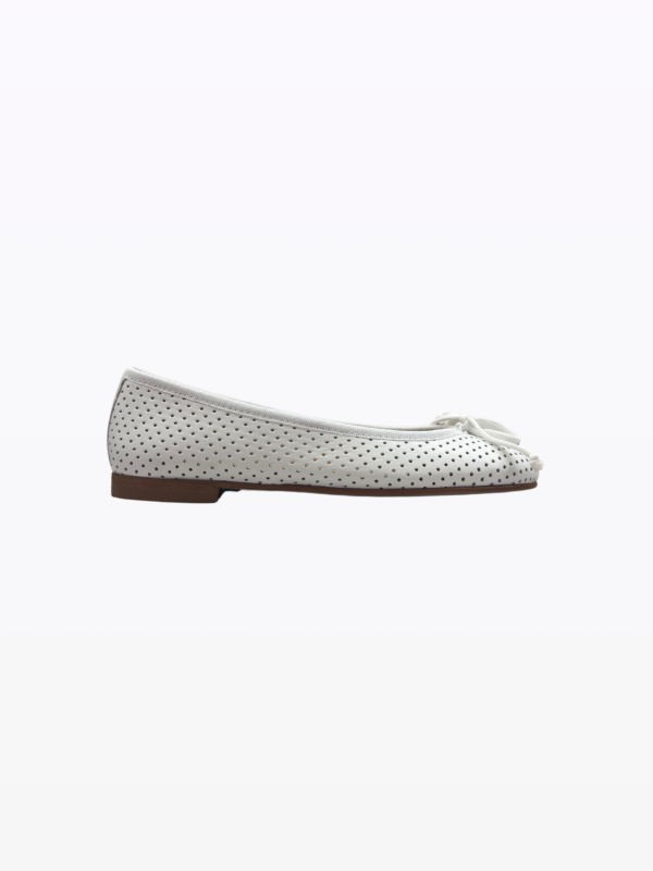 Ballerine effet pieds nus idéal pour toutes les morphologies. Cuir de veau italien perforé, doublure cuir. 1 cm de talon. Semelle en cuir 4 saisons. Résiste à la pluie. MADE IN ITALY Barefoot effect ballerina ideal for all body types. Perforated Italian calfskin, leather lining. 1 cm heel. 4 seasons leather sole. Resists rain.