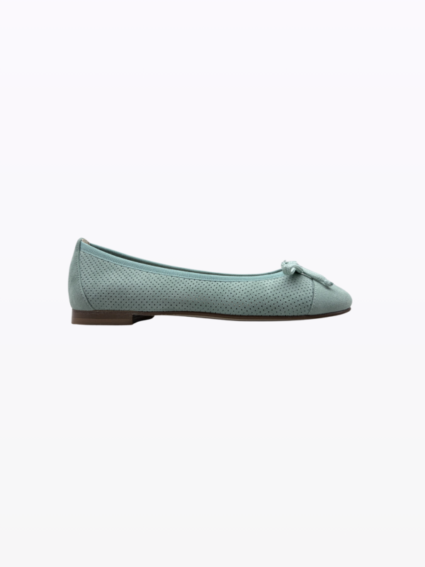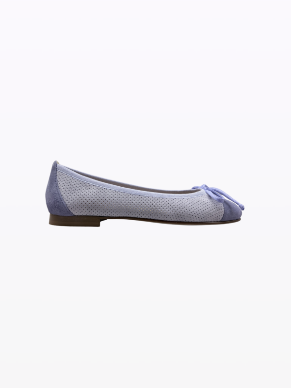 Ballerine effet pieds nus idéal pour toutes les morphologies. Daim italien perforé, doublure cuir. 1 cm de talon. Semelle en cuir 4 saisons. Résiste à la pluie. MADE IN ITALY Barefoot effect ballerina ideal for all body types. Perforated Italian suede, leather lining. 1 cm heel. 4 seasons leather sole. Resists rain.